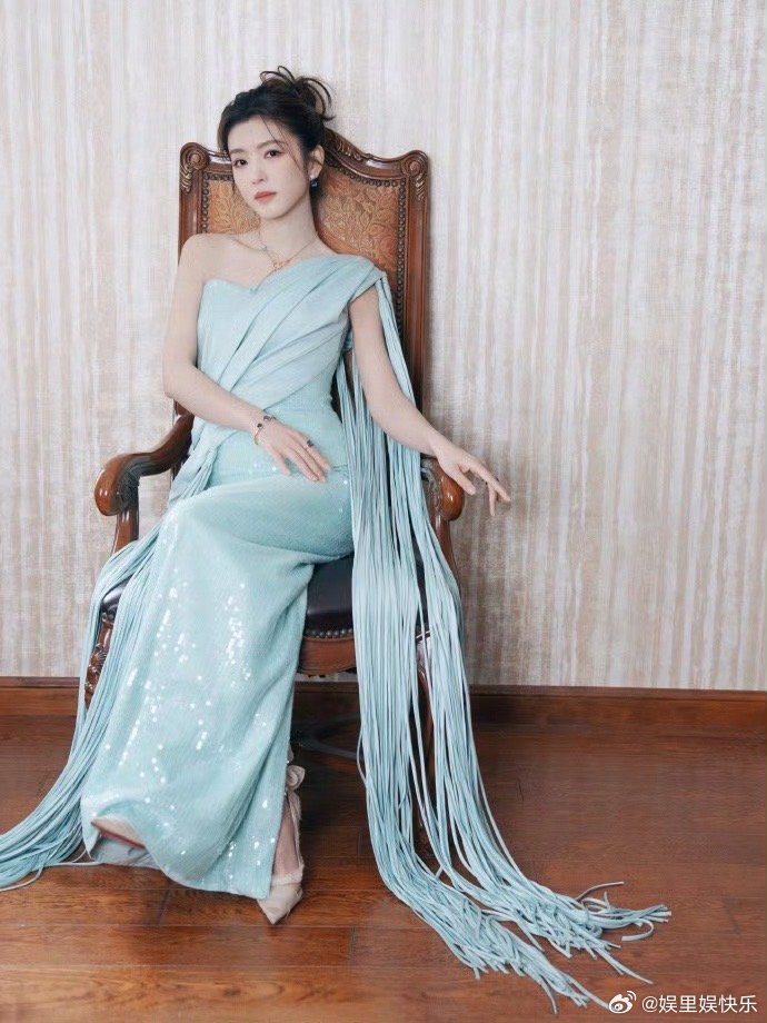 李云霄东方美人 亮片流苏为她添星光,斜肩裙衬出东方美人的风骨,清爽秀雅又大气,温