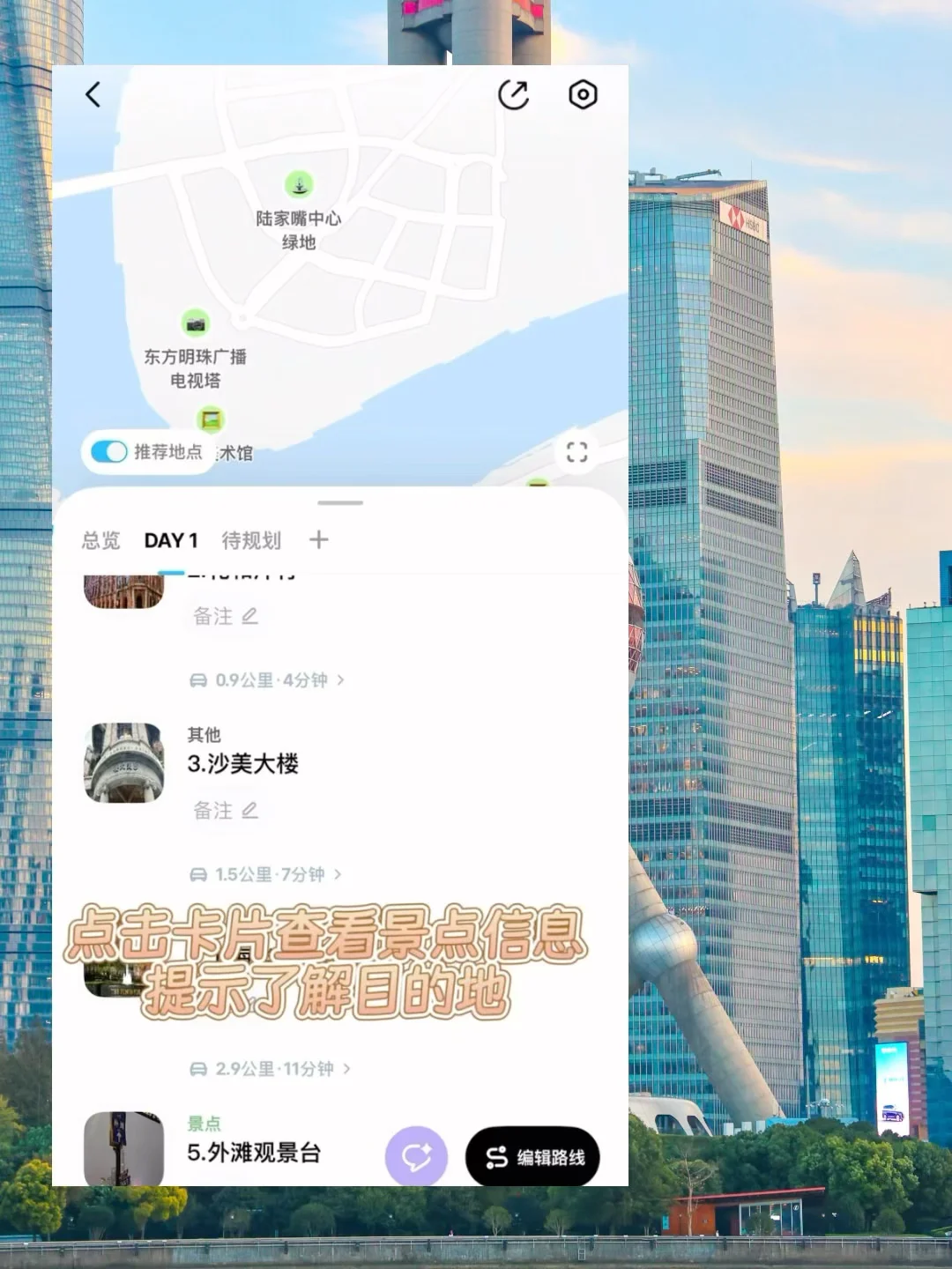 上海是真不缺免费有好玩的地方! 刚回来给大家整理了保姆级攻略 每条路都太太好拍了!citywalk也超惬意 尤其电影🎬氛围感直接拉满[派对R] 📝这次出门也是用规划路线的。不仅可以一键生成路线,不走弯路~还可以直接显示天气预报☀️和点亮打卡地。仪式感很足💯 🗺️打卡路线 武康大楼➡️静安寺➡️马勒别墅➡️礼和洋行➡️沙美大楼➡️半岛酒店➡️外滩观景台➡️白玉兰广场➡️北外滩 【[清单R]小tip】 上面路线之间基本都很近的哈,步行citywalk就行,可以穿个舒服的鞋子哦