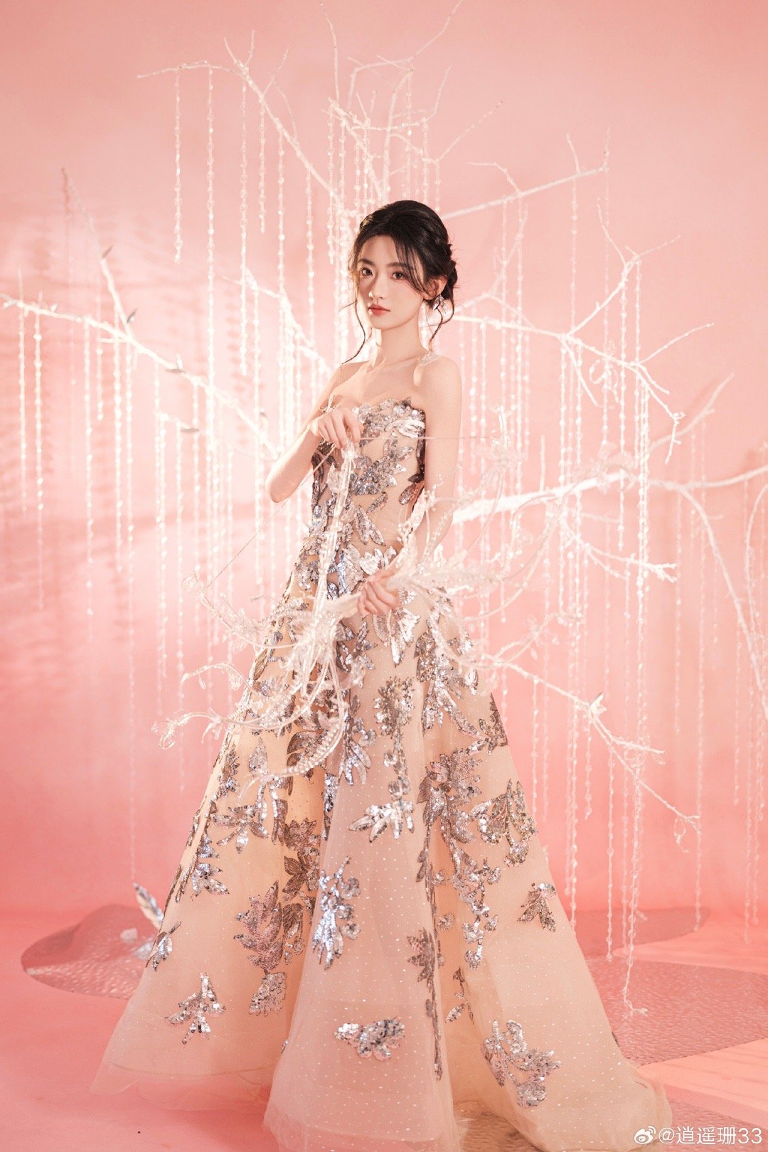 杨雨潼好薄一片 美得像一件精雕的玉器!清薄身形被亮片裙衬得玲珑有致,转身时裙摆荡开的弧度,发丝拂过的轨迹,都透着精心计算过的自然感,氛围满分。