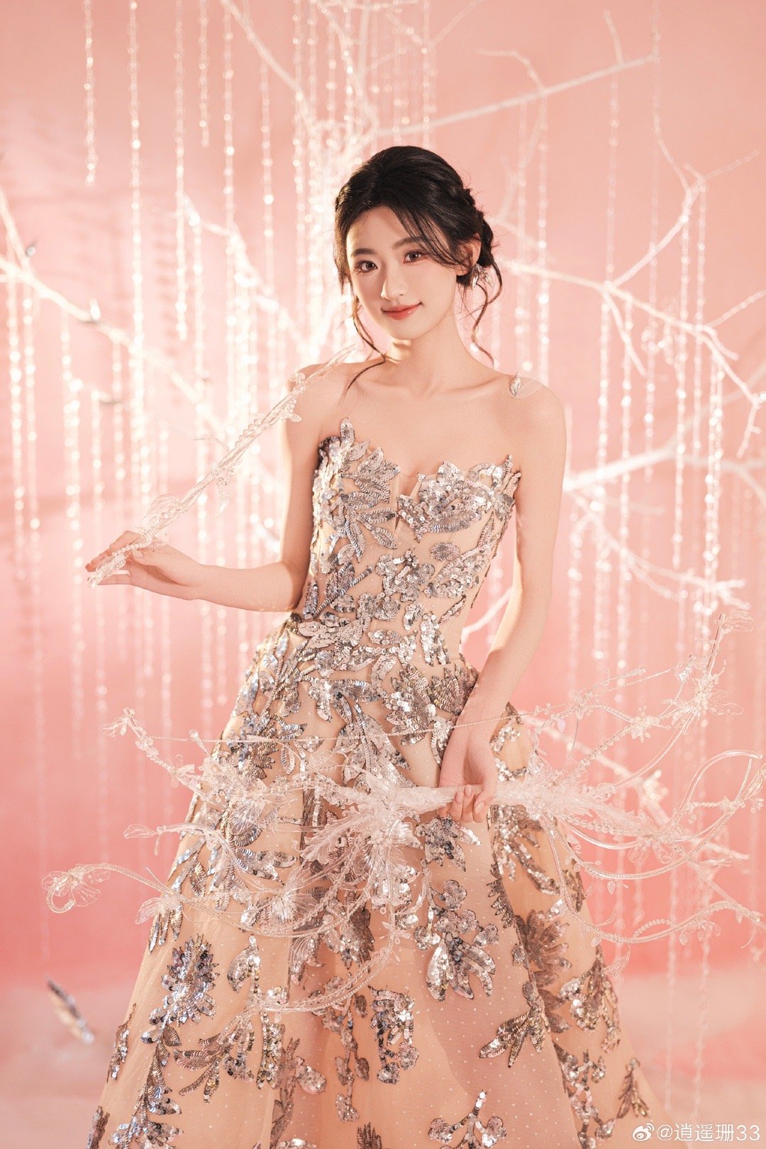 杨雨潼好薄一片 美得像一件精雕的玉器!清薄身形被亮片裙衬得玲珑有致,转身时裙摆荡