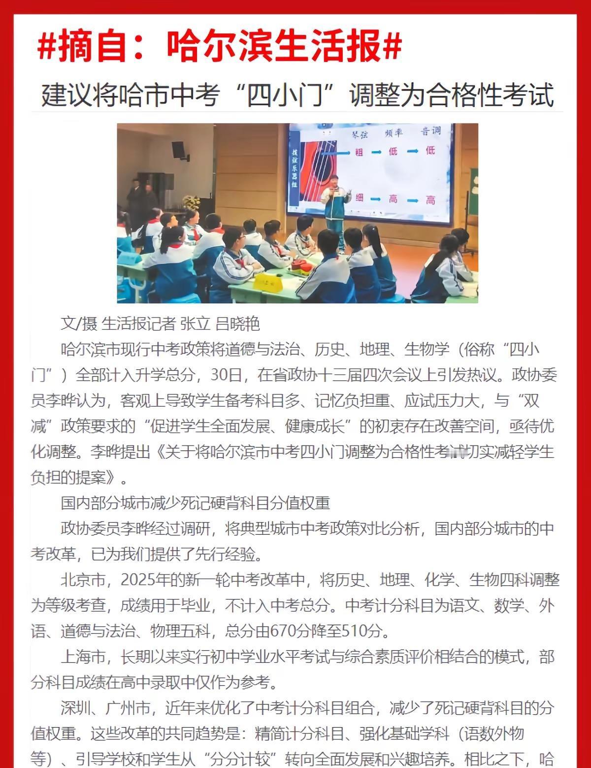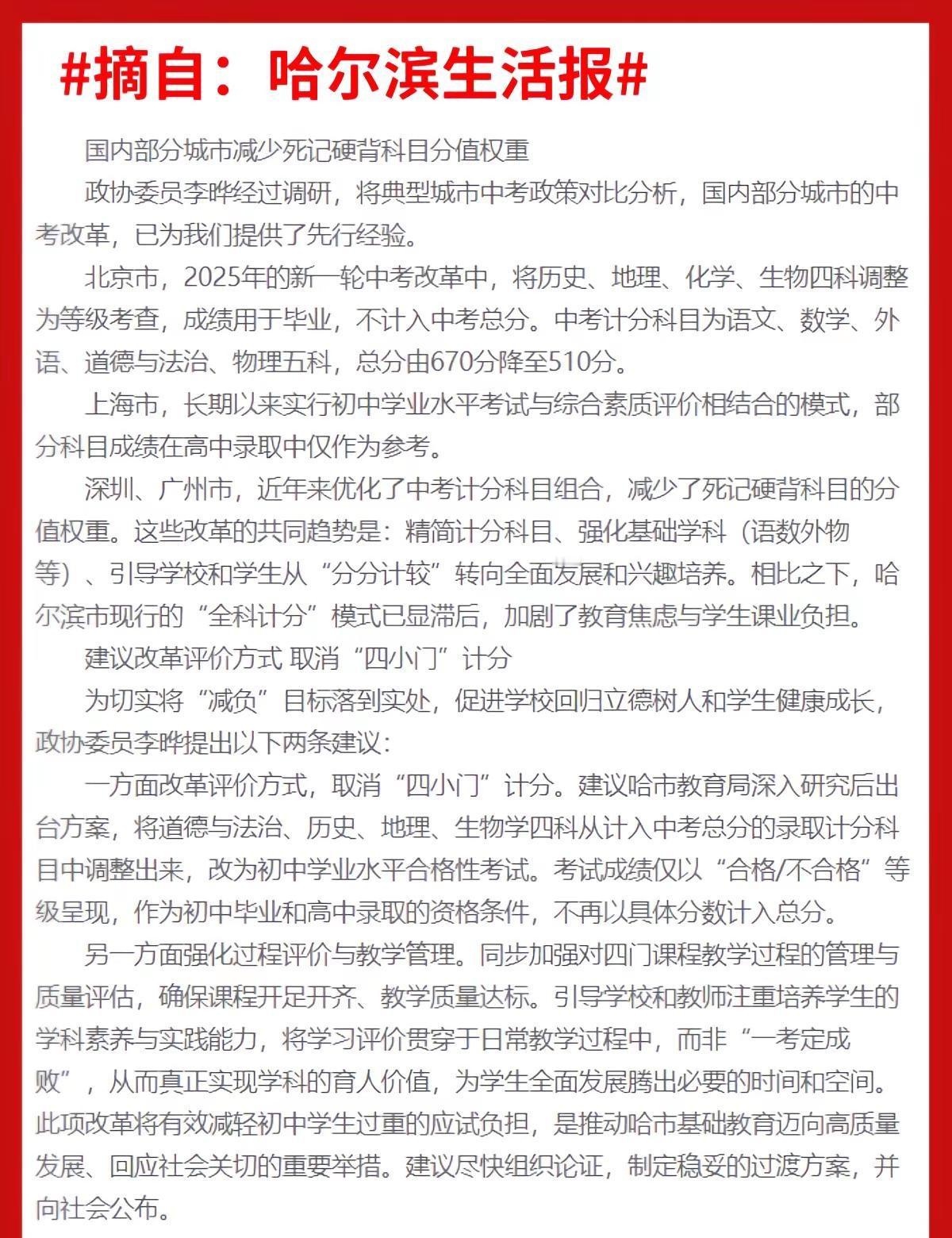 哈市小四门调整?委员提出中肯建议!大家觉得,什么时候会进行调整呢?评论区讨论一下吧!哈尔滨中考 小四门 取消小四门