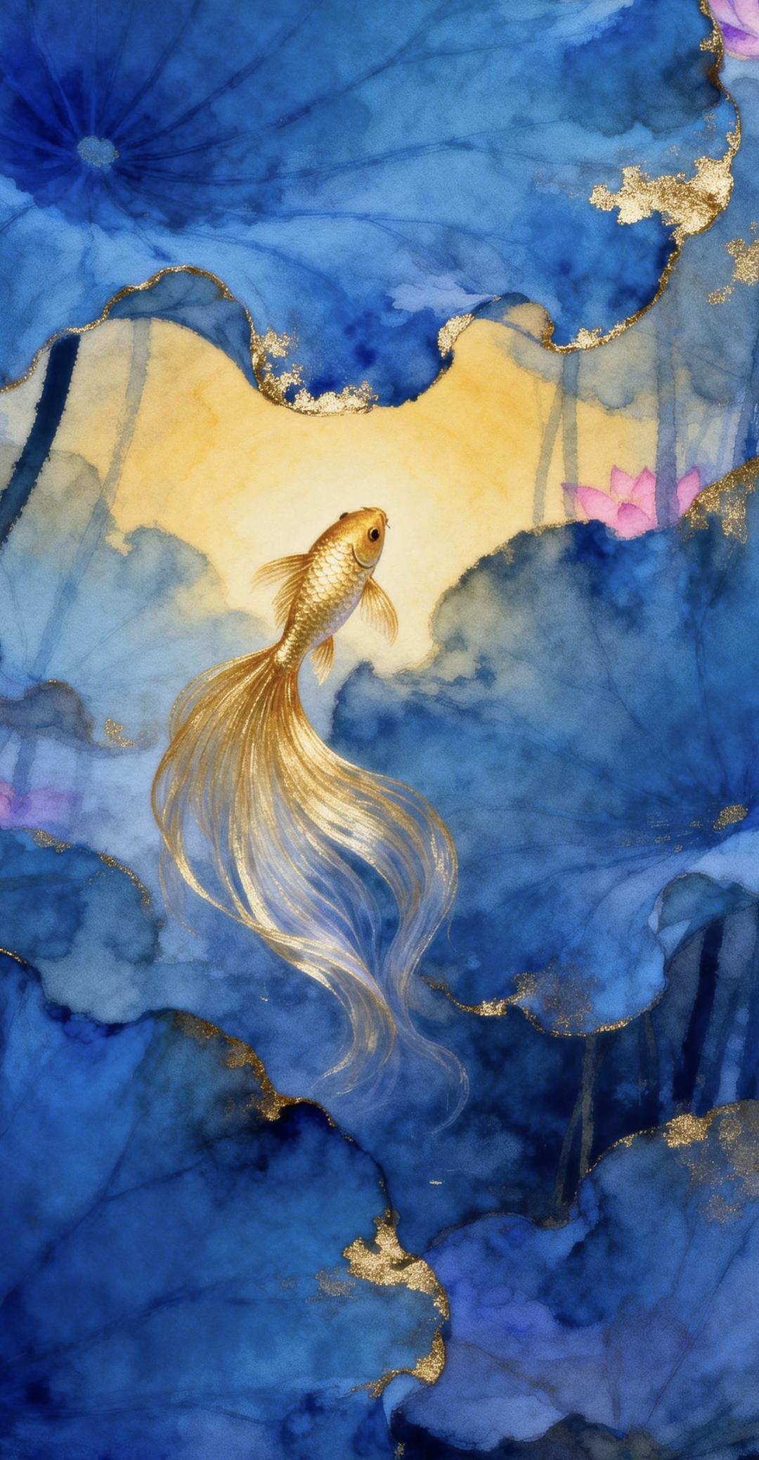 紫气东来,金鲤献瑞,蓝叶纳吉,家业兴旺。 传统文化 绘画