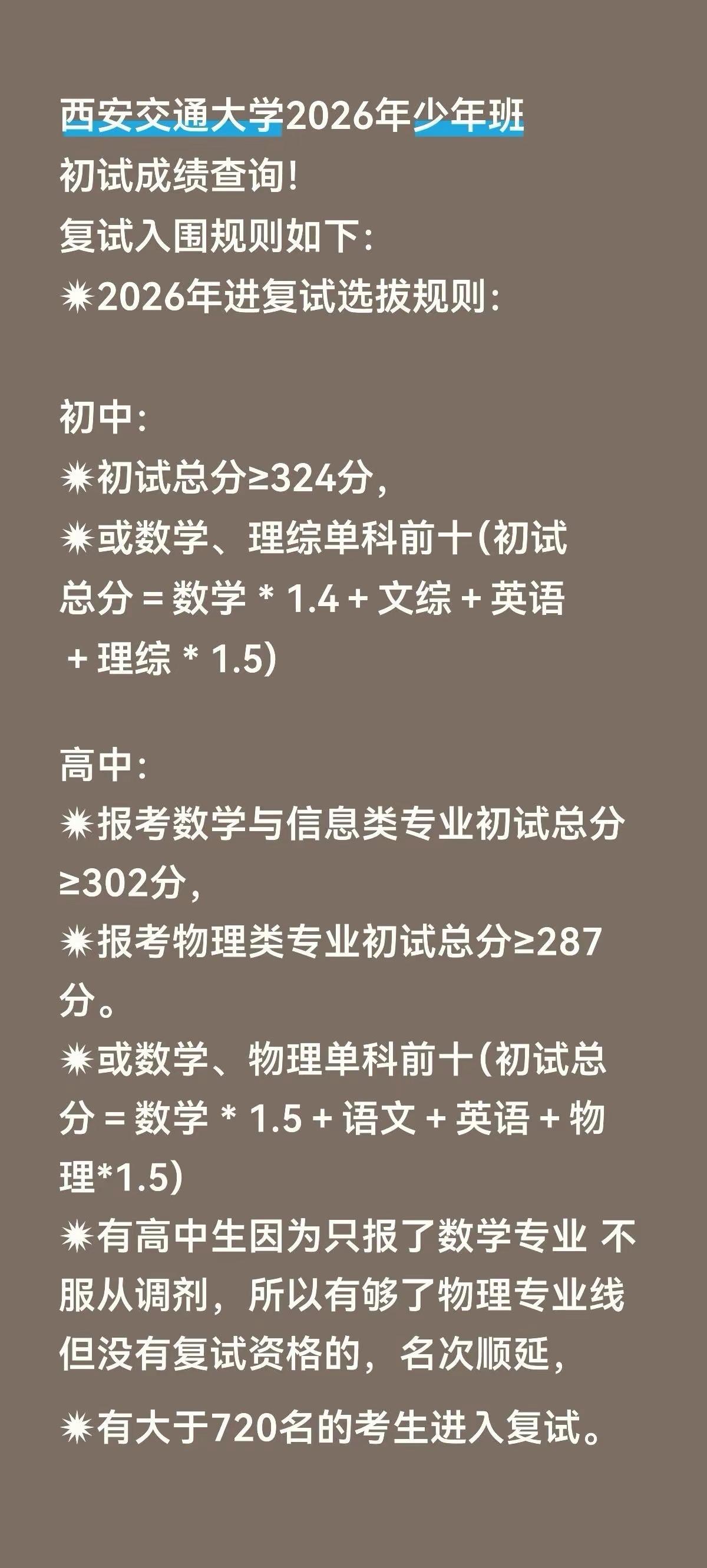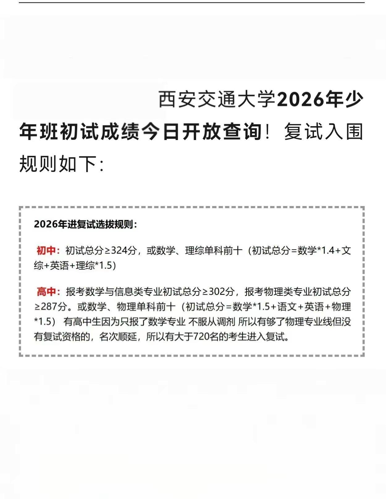 西安交通大学2026年少年班初试成绩公布。西安交通大学2026年少年班初试成绩公