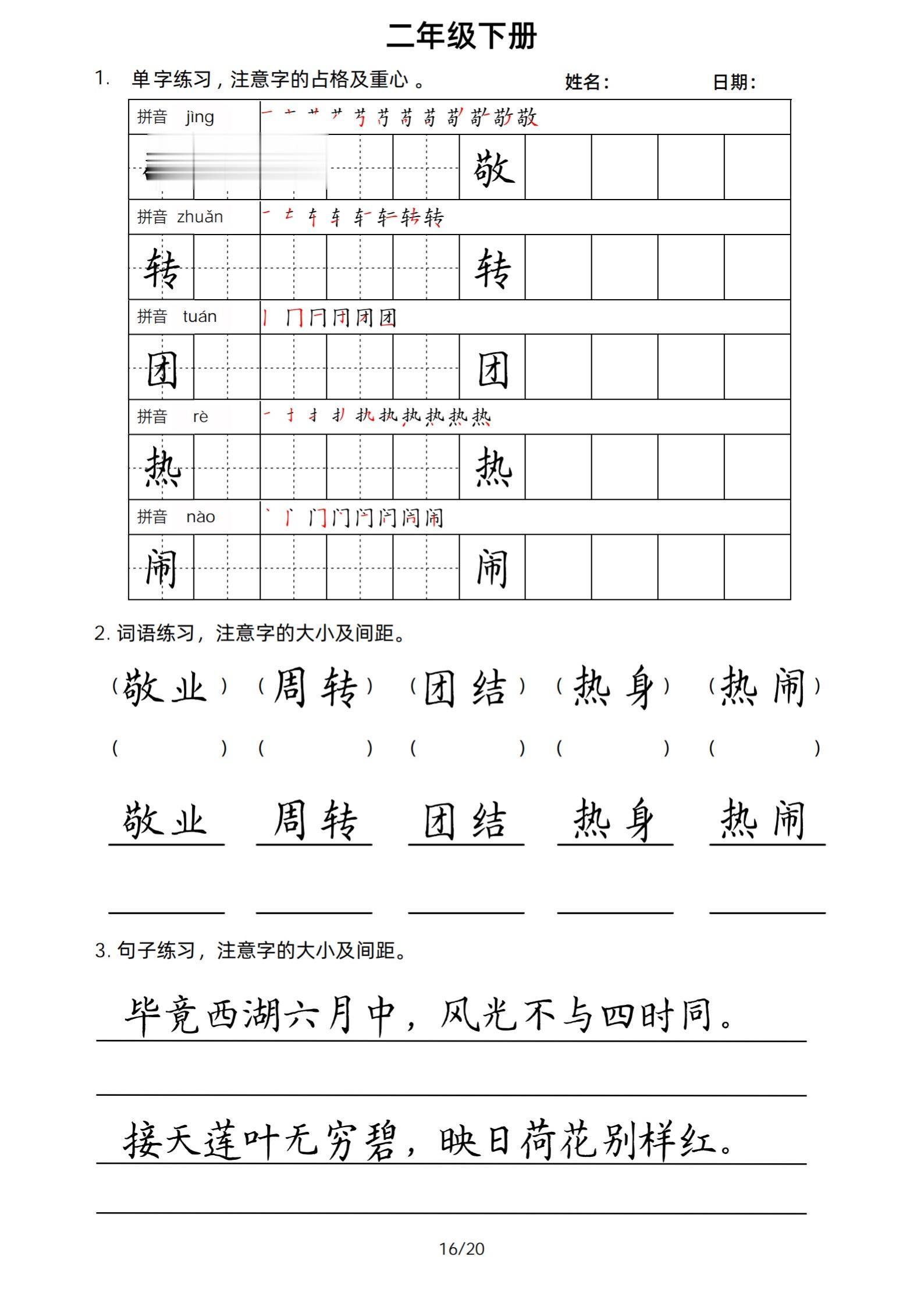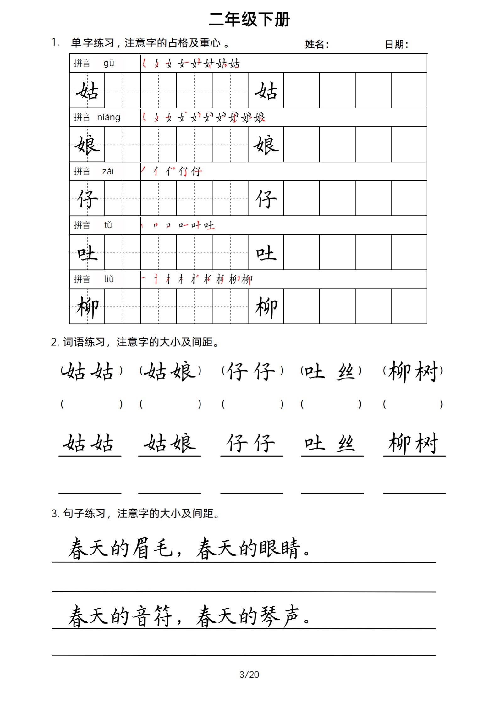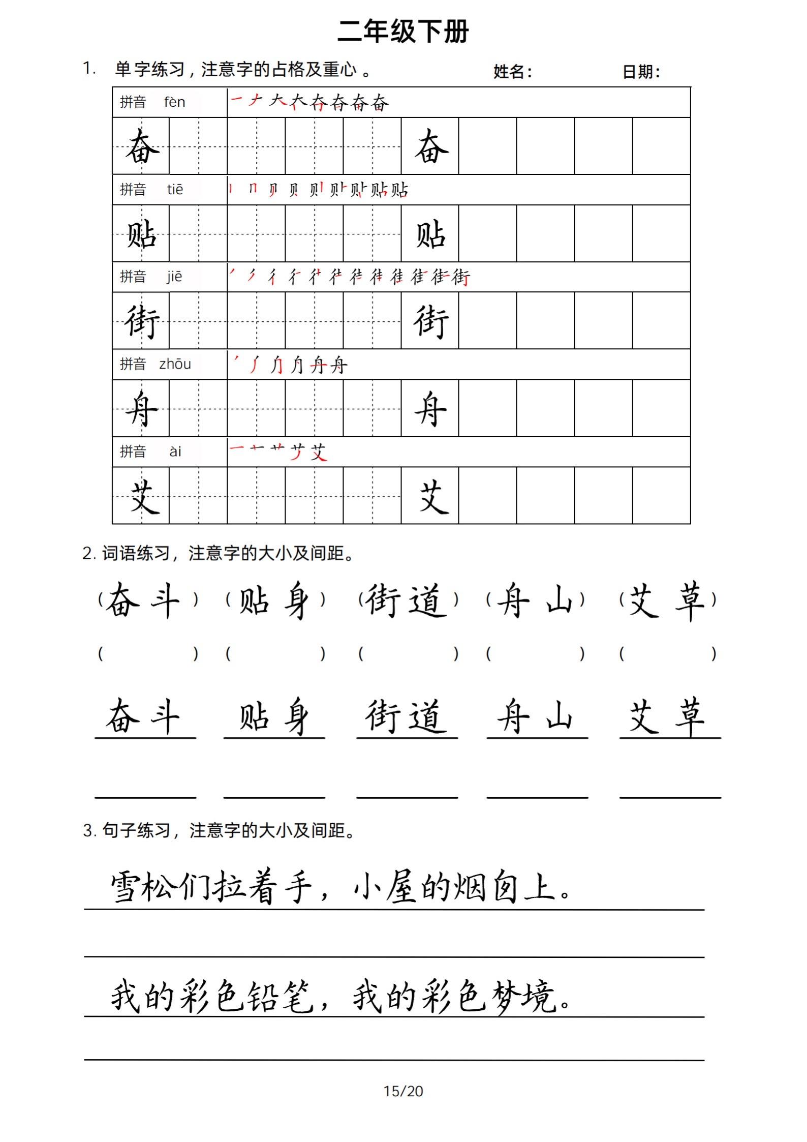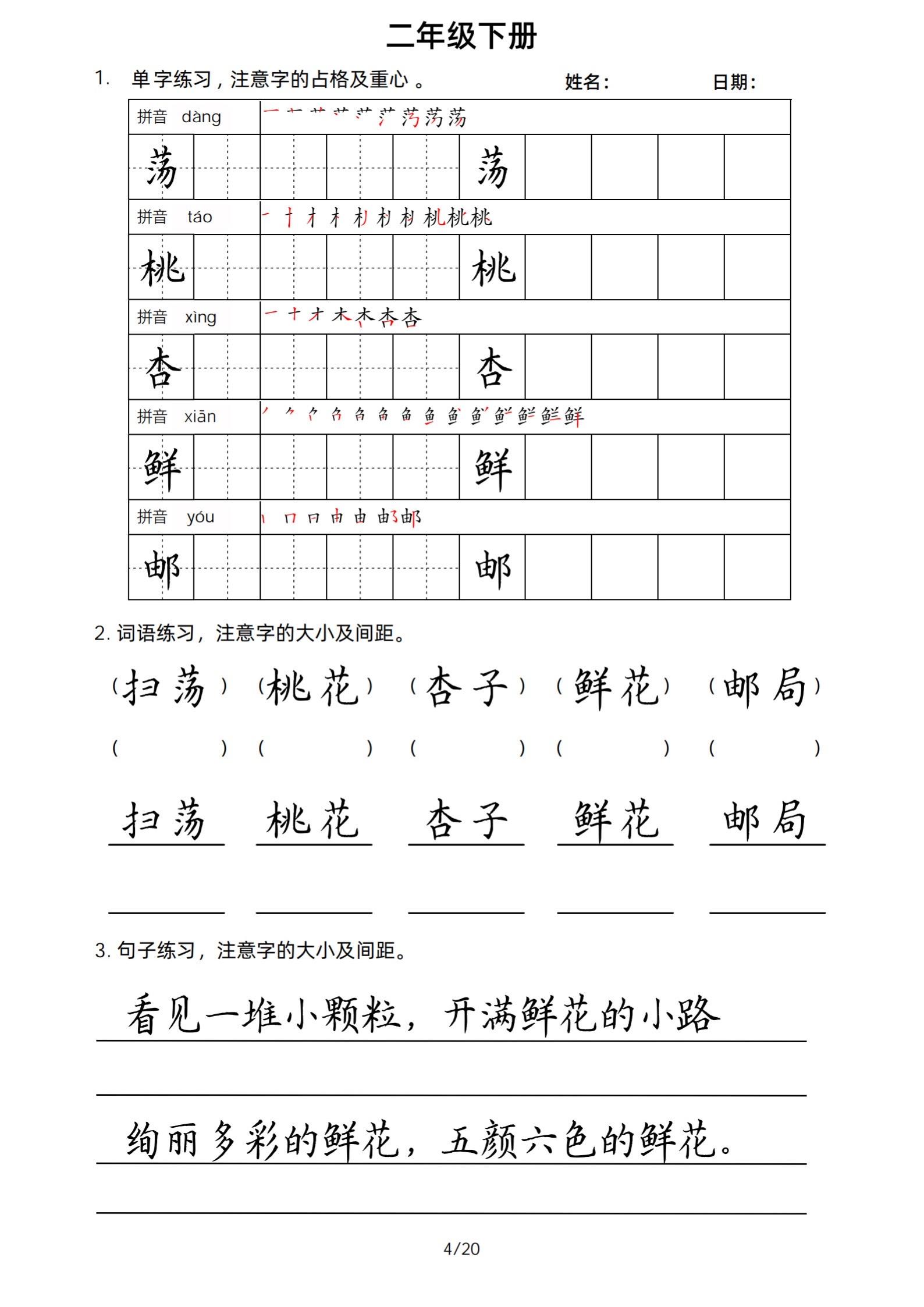 26春小学二年级语文下册生字单词词语句子。寒假作业练习学习打卡ing 鹏翔小学 化龙小学 桃溪小学 桃城小学 永春县桃城镇师范路最便宜打印店,八方文印店。有需要可以自行下载打印出来。家长收藏有益。