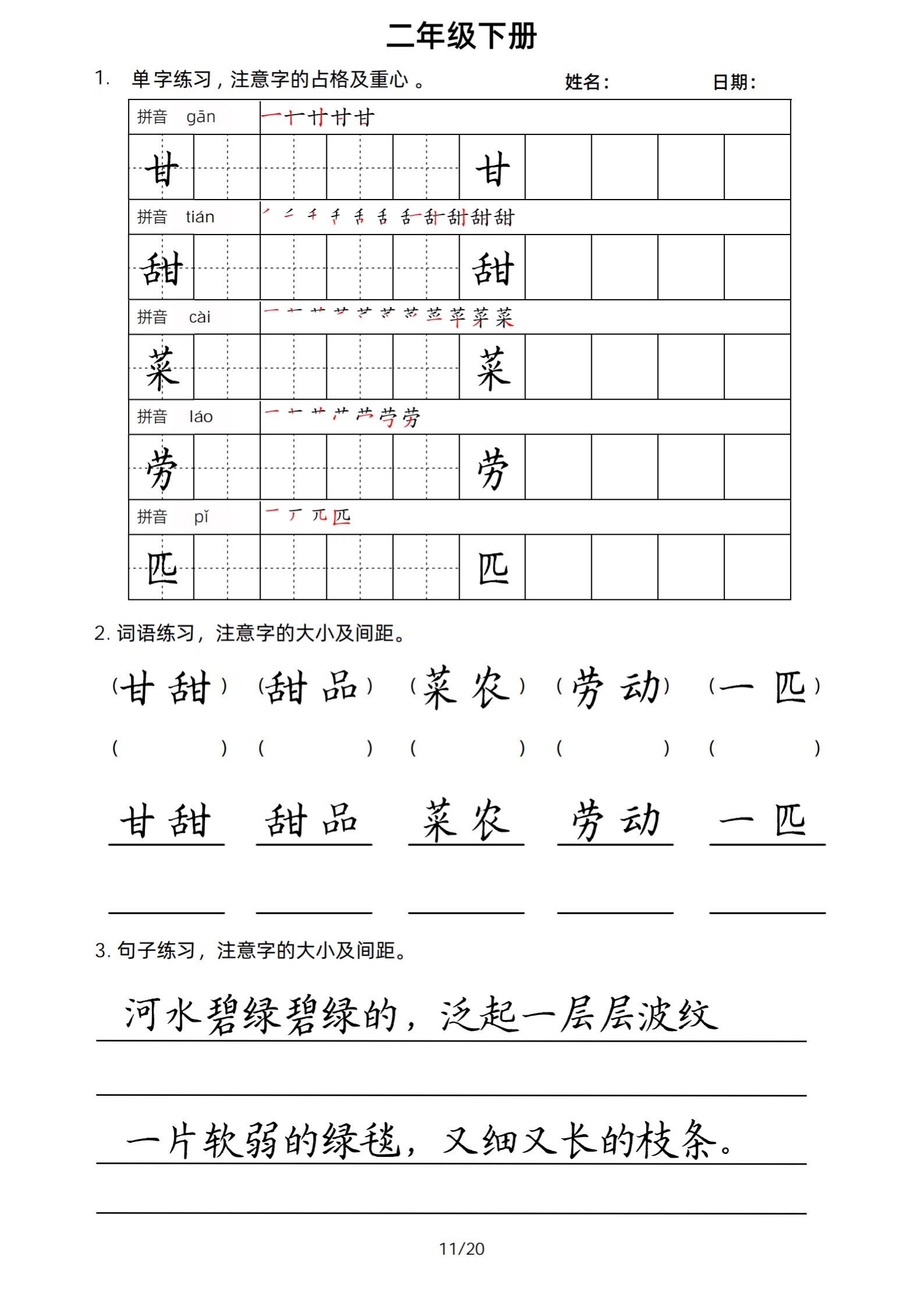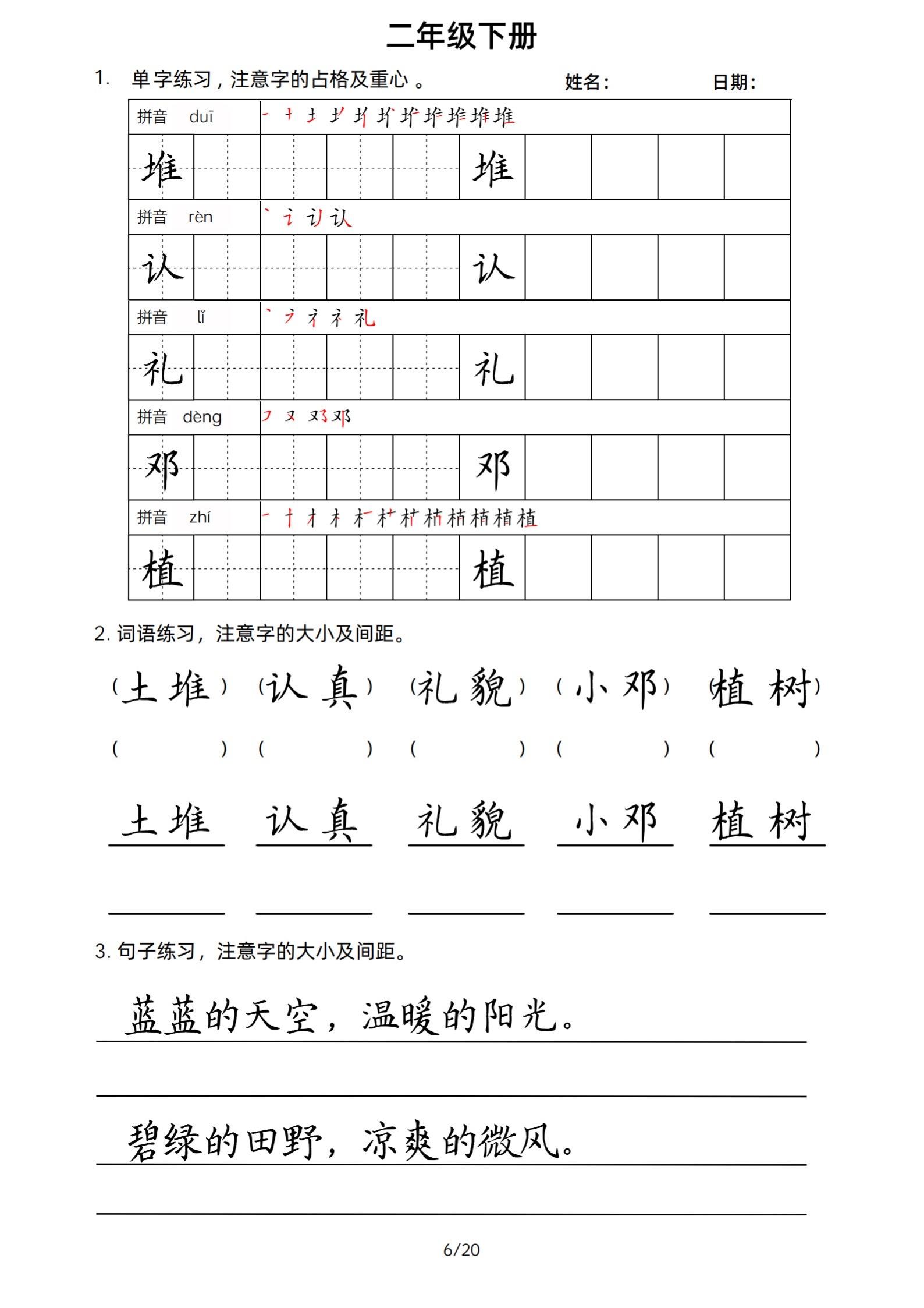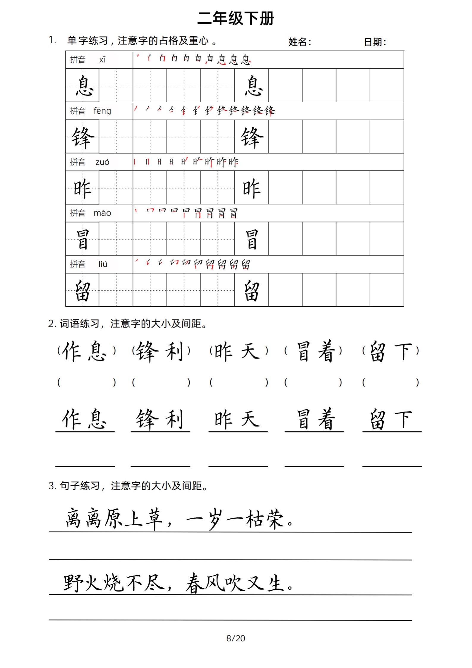 26春小学二年级语文下册生字单词词语句子。寒假作业练习学习打卡ing 鹏翔小学 化龙小学 桃溪小学 桃城小学 永春县桃城镇师范路最便宜打印店,八方文印店。有需要可以自行下载打印出来。家长收藏有益。