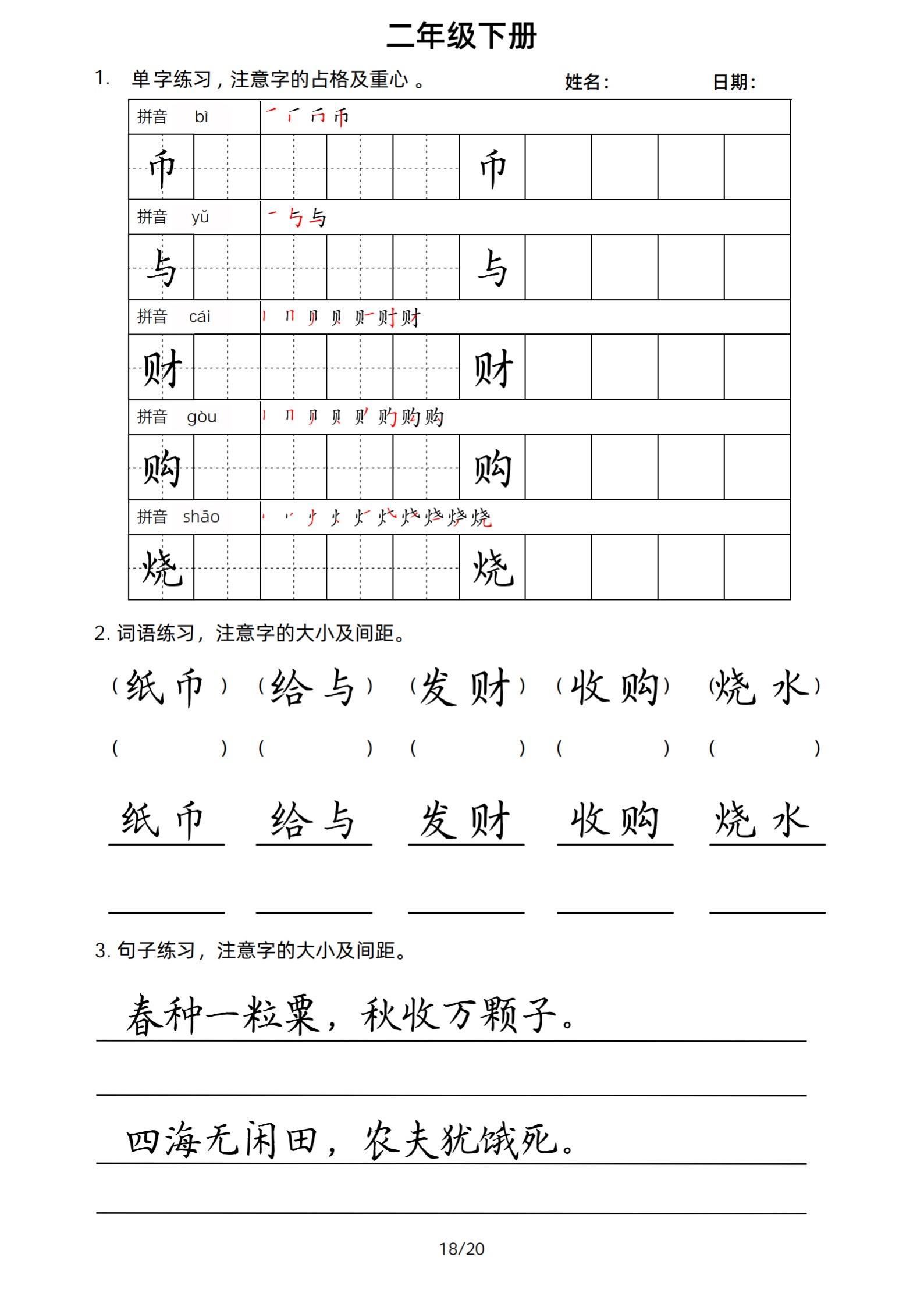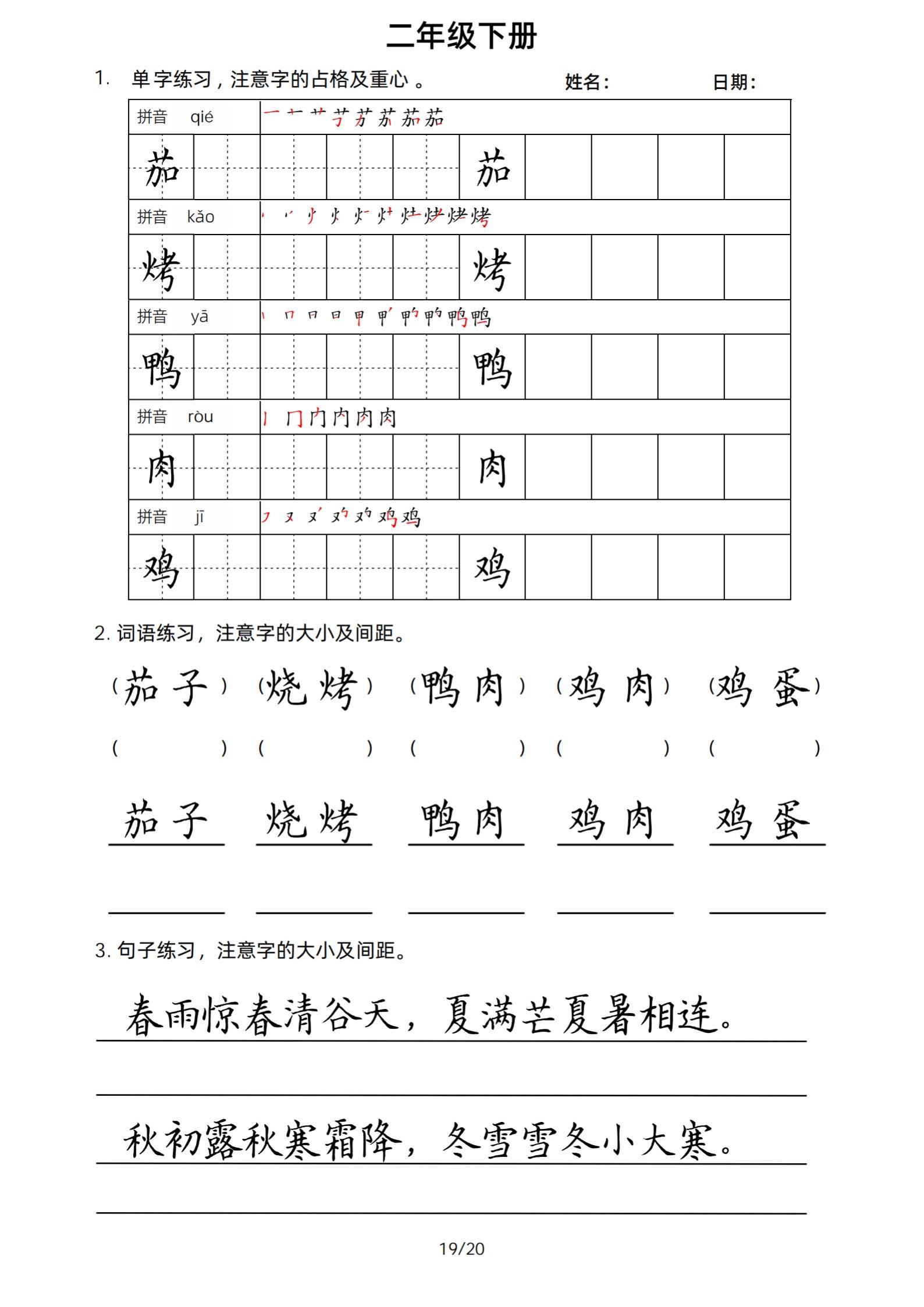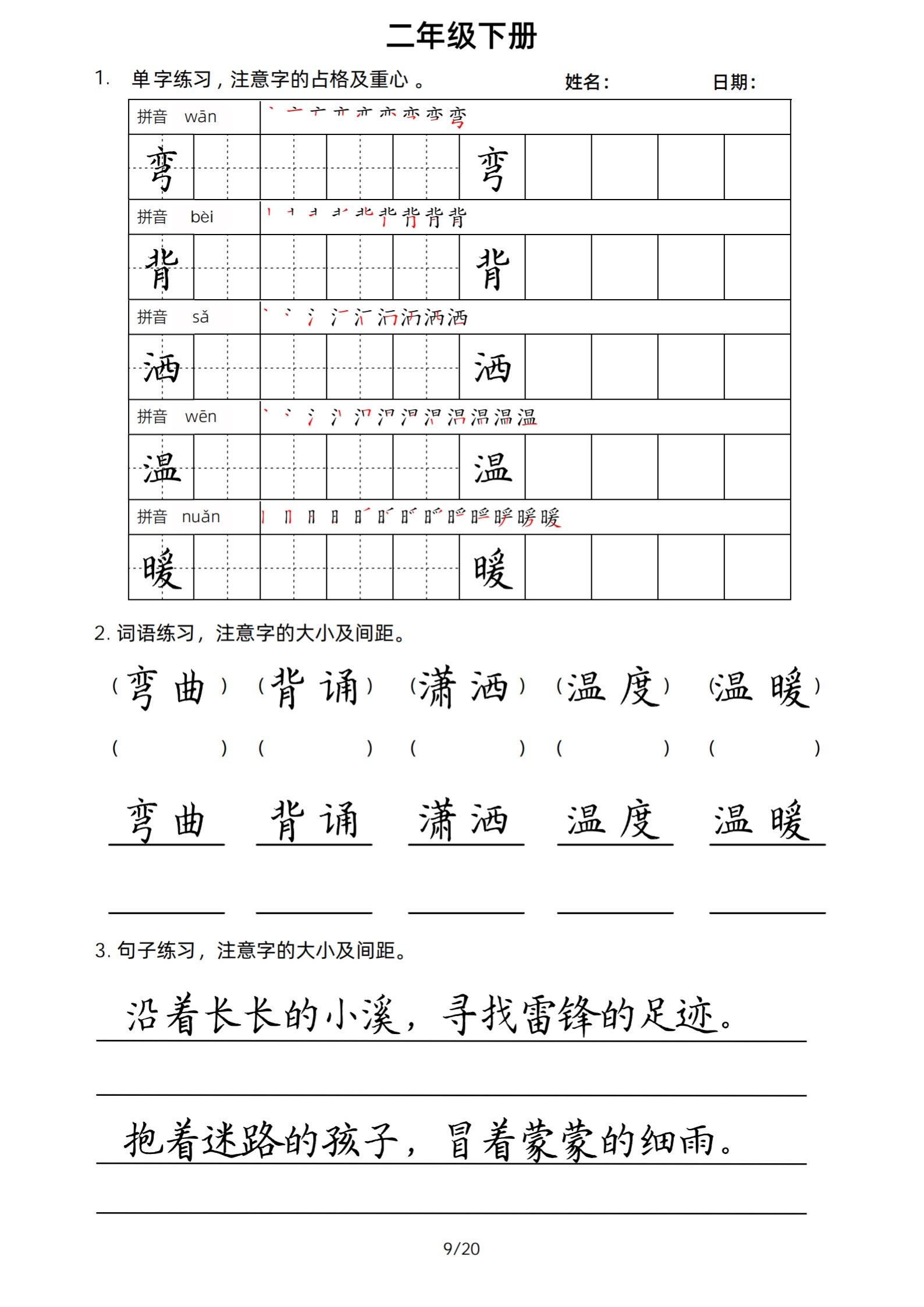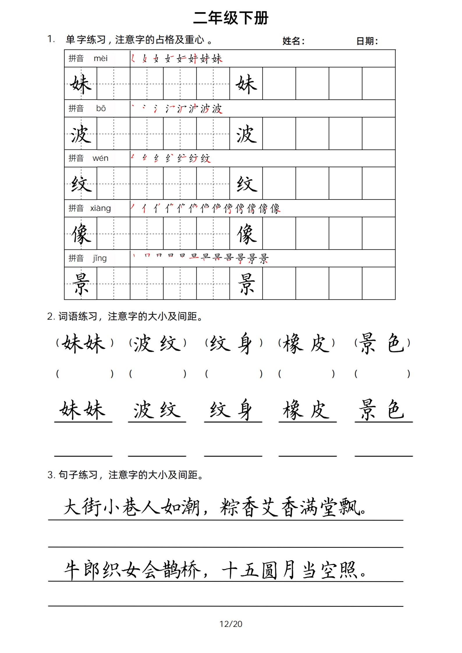 26春小学二年级语文下册生字单词词语句子。寒假作业练习学习打卡ing 鹏翔小学 化龙小学 桃溪小学 桃城小学 永春县桃城镇师范路最便宜打印店,八方文印店。有需要可以自行下载打印出来。家长收藏有益。