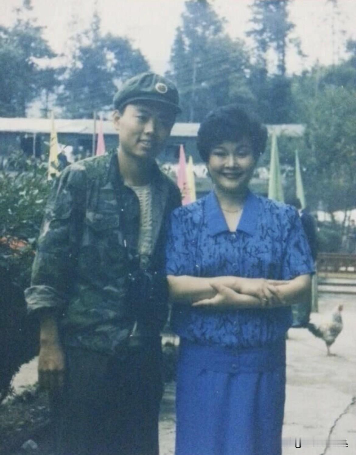 上世纪八十年代,中越对战期间,老山前线成为战斗最激烈的地区之一。前线战士在恶劣的环境下坚守阵地,急需精神慰藉,于是有了文工团下前线工作。文工团的任务不仅是演出,还包括慰问、发放慰问品,甚至帮助转移伤员。图为对越参战的将士们和王刚,李谷一,董文华合影留念。
