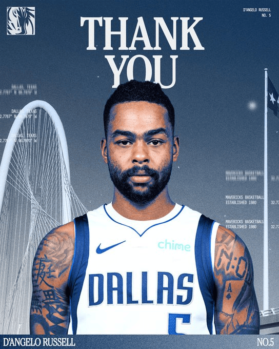 仅加盟半赛季!独行侠官方致谢拉塞尔:谢谢你,DLo