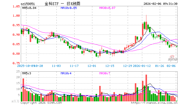 2月6日,金融科技ETF(159851)开盘跌0.59%,报0.836元。金融科技ETF(159851)重仓股方面,同花顺开盘跌0.28%,东方财富跌0.65%,指南针跌1.00%,恒生电子跌0.93%,润和软件跌0.70%,新大陆跌0.75%,东华软件跌0.85%,广电运通跌0.47%,银之杰跌2.18%,四方精创跌1.84%。