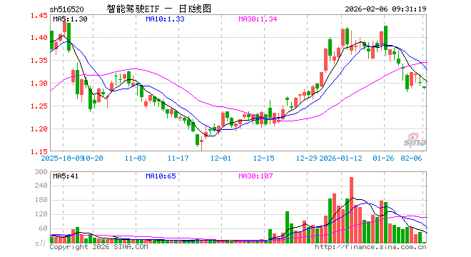 2月6日,智能驾驶ETF(516520)开盘跌0.69%,报1.292元。智能驾驶ETF(516520)重仓股方面,拓普集团开盘跌0.63%,豪威集团跌0.88%,科大讯飞跌0.90%,比亚迪跌0.80%,长安汽车涨0.09%,赛力斯跌0.51%,芯原股份跌3.69%,立讯精密跌0.64%,德赛西威跌0.71%,北京君正跌1.35%。
