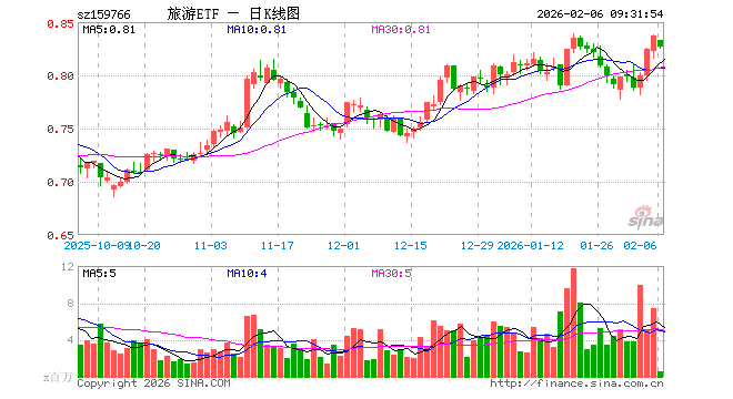2月6日,旅游ETF(159766)开盘跌0.48%,报0.833元。旅游ETF(159766)重仓股方面,中国中免开盘跌1.05%,中国东航跌0.94%,南方航空跌0.48%,上海机场跌0.61%,中国国航跌0.11%,宋城演艺跌1.21%,海南机场跌1.09%,锦江酒店涨0.04%,春秋航空跌0.59%,首旅酒店跌0.84%。