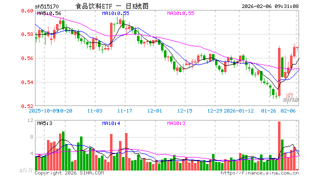2月6日,食品饮料ETF(515170)开盘跌0.18%,报0.568元。食品饮料ETF(515170)重仓股方面,贵州茅台开盘涨0.00%,五粮液涨0.01%,伊利股份涨0.11%,泸州老窖涨0.02%,山西汾酒跌0.37%,海天味业跌0.16%,东鹏饮料跌0.73%,洋河股份跌0.50%,安琪酵母涨0.00%,今世缘跌0.03%。