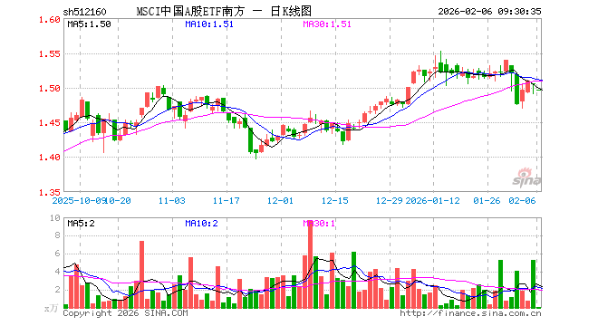2月6日,MSCI中国A股ETF南方(512160)开盘跌0.60%,报1.496元。MSCI中国A股ETF南方(512160)重仓股方面,贵州茅台开盘涨0.00%,宁德时代跌1.00%,招商银行跌0.03%,工业富联跌1.63%,中国平安跌0.70%,紫金矿业跌5.07%,中际旭创跌2.47%,长江电力涨0.00%,农业银行涨0.00%,寒武纪跌1.49%。