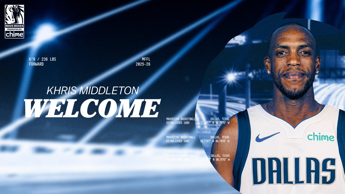 达拉斯独行侠队官方推特今日正式宣布,全明星前锋克里斯·米德尔顿正式加盟球队。独行侠官方账号发布欢迎消息:'欢迎来到达拉斯,克里斯!'并附上了米德尔顿的个人推特账号@chime以及球队标志性话题标签#MFFL(MavsFansForLife)。米德尔顿作为三届NBA全明星球员,曾帮助密尔沃基雄鹿队夺得2021年NBA总冠军,他的加盟将为独行侠的锋线实力带来显著提升。这笔交易的具体细节尚未完全公布,但预计将对独行侠冲击季后赛产生重要影响。
