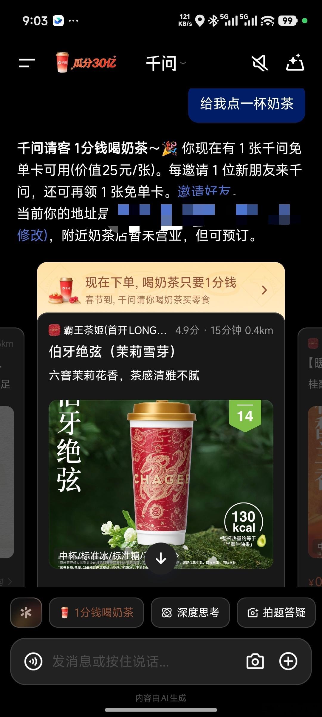 敲黑板,薅羊毛机会来了。千问上线了请全国人民吃喝玩乐的活动,第一波请喝奶茶已经开始了,大家可以去千问薅羊毛了。注意大家薅羊毛之前一定要把千问升级到最新版本。另外我个人也在评论区抽五个眼熟粉丝每人送一杯奶茶。千问免单