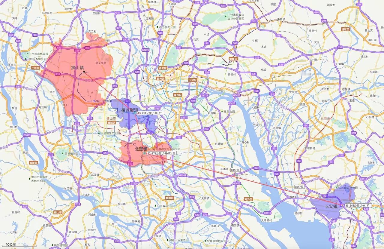 广东四个千亿镇分布图,分别是南海狮山、南海桂城、顺德北滘、东莞长安,佛山还是强,四个镇占了三个。不过佛山传统行业太多,转型难度大,例如狮山的大众汽车、北滘的碧桂园、美的等,都是汽车、家电、陶瓷、地产,所以佛山2025年GDP负增长也是可以理解的。