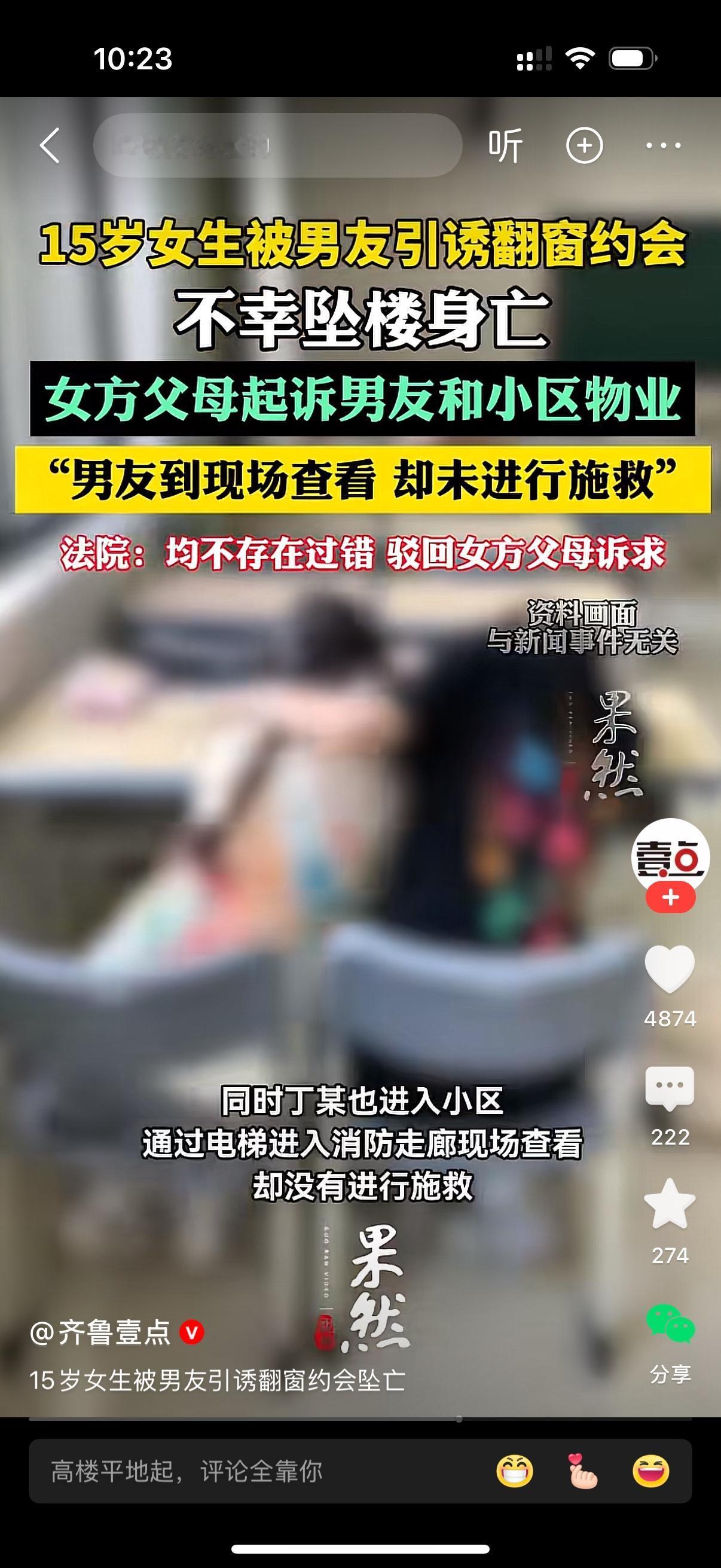 真是让人揪心又惋惜的一件事,一名15岁的女孩,被男友引诱着翻窗出去约会,没想到意外突然发生,女孩不幸坠楼身亡。更让人心寒的是,男友当时就在现场,眼睁睁看着却没有采取任何施救措施,女孩的父母悲痛欲绝,直接把男友和小区物业一并告上了法庭,要求赔偿。 可法院经过审理,最终给出的判决是男友和物业都没有法律责任,驳回了家长的赔偿诉求。咱们掰扯清楚缘由就明白,这个判决是按法律来的。 女孩已经15岁,完全能意识到翻窗这种行为有多危险,坠楼的直接原因就是她自己实施了危险的翻窗行为。男友虽然引诱约会,现场也没施救,但从法律层面来说,他的行为和女孩坠楼没有直接的因果关系,也不存在法定的救助义务,构不成侵权。而小区物业呢,已经做好了该有的安全管理,设施也都合规,女孩私自翻窗属于个人违规行为,早就超出了物业的管护范围,物业自然不用担责。 花季少女离世,为人父母的悲痛我们都能共情,但法律讲的是过错和责任归属,不能因为发生了悲剧,就强行让无关方买单。也希望这件事能给所有家长敲个警钟,一定要多关注未成年孩子的情感和安全,千万别让这种悲剧再重演了。