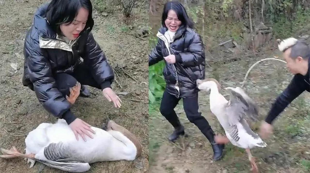 2月5日,山东烟台一女孩在喂鹅时被突然袭击,竟然冷静反击,将鹅打服。这一幕在网络