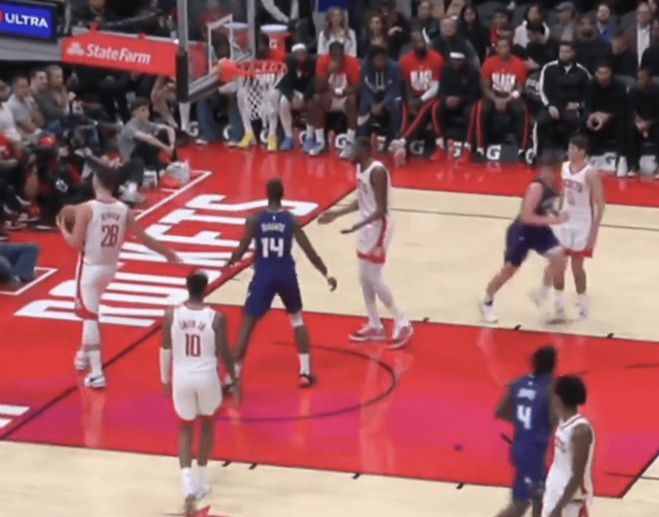美媒Fullcourtpass晒出了第二节末的一段视频,克尼普尔轻松突破申京上篮得分。