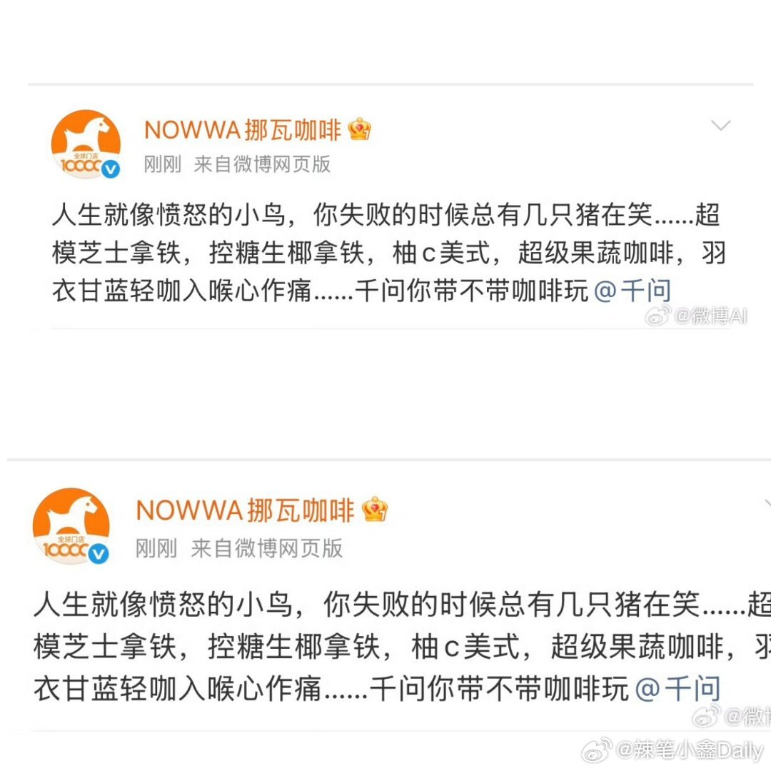 挪瓦为咖啡人喊话千问免单咖啡挪瓦咖啡暖心发声,喊话千问免单咖啡,骑手们穿梭城市大街小巷,给我们送来了每一杯咖啡的温度!