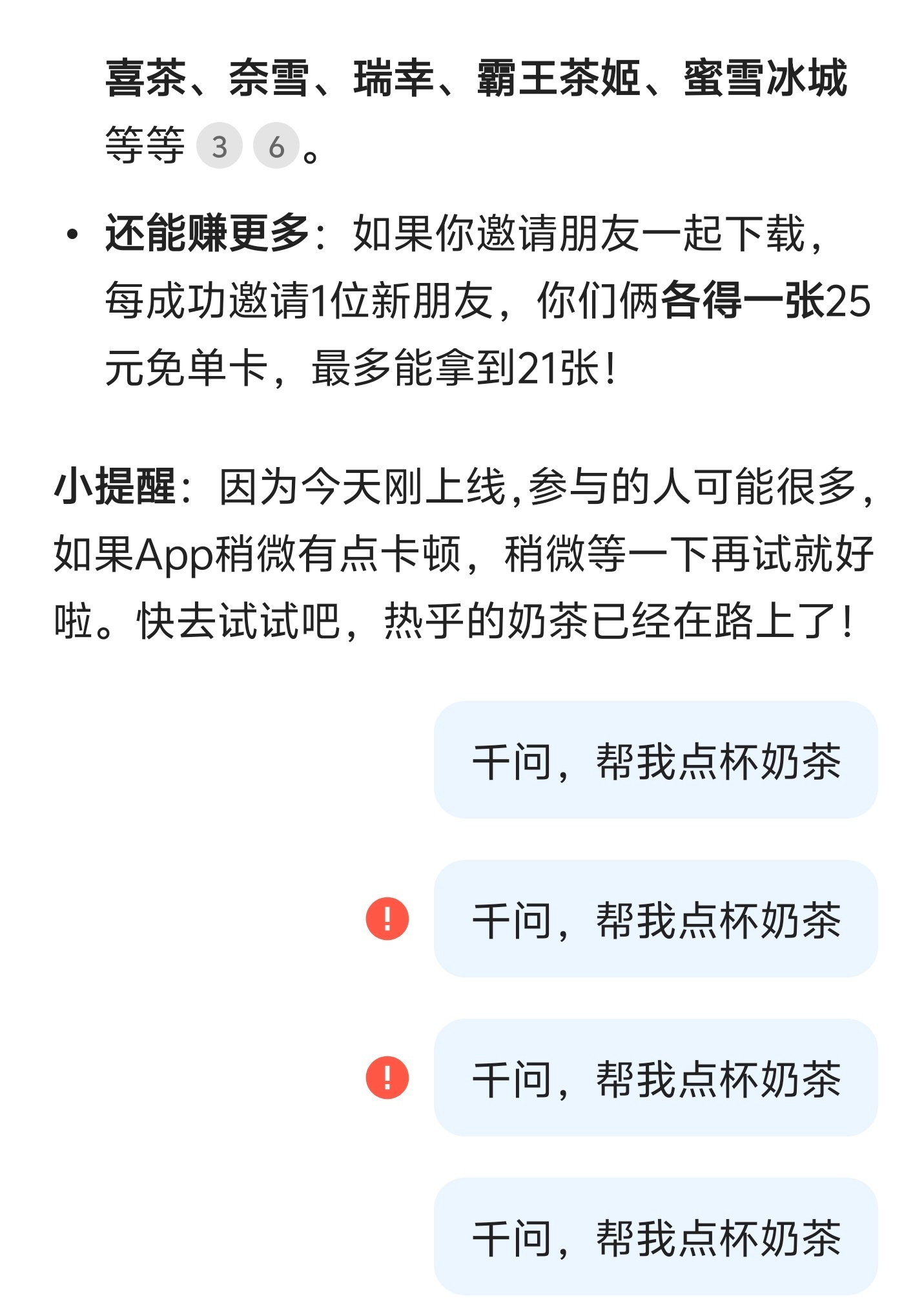 千问 免费奶茶瞧瞧你们,都把人家给干崩溃了不过这不要钱的奶茶谁能忍住诱惑~