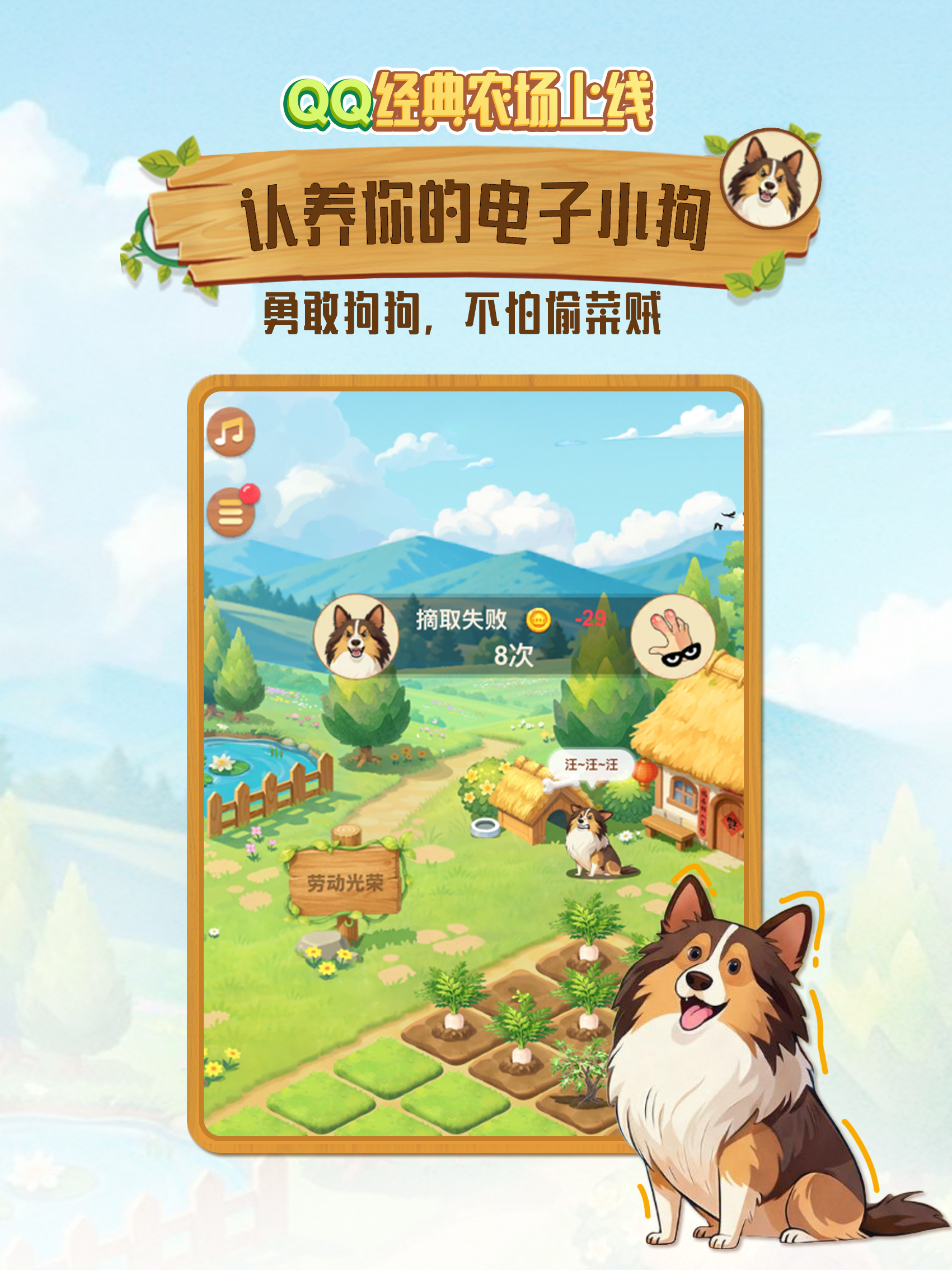 QQ农场今天终于全平台回归了,QQ微信都能玩。还是熟悉的种菜偷菜,但也搞了点新花样,像什么“拍一拍”喊人收菜,还给配了只电子狗看家。QQ农场宣布正式回归