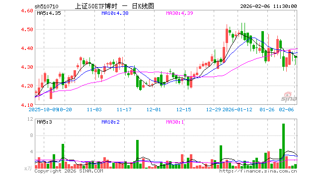 2月6日,截止午间收盘,上证50ETF博时(510710)跌0.46%,报4.347元,成交额405.95万元。上证50ETF博时(510710)重仓股方面,贵州茅台截止午盘跌2.68%,中国平安跌0.88%,紫金矿业涨0.27%,招商银行跌0.65%,兴业银行跌0.27%,长江电力跌0.56%,寒武纪跌1.14%,中信证券跌0.39%,恒瑞医药跌0.77%,工商银行跌0.55%。