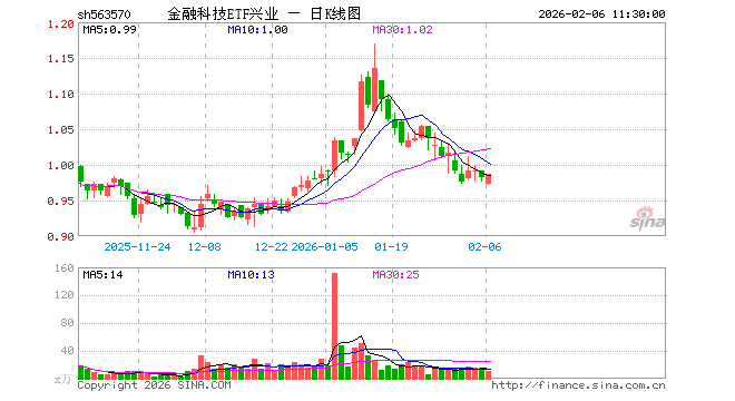 金融科技ETF兴业(563570)业绩比较基准为中证金融科技主题指数收益率,管理人为兴业基金管理有限公司,基金经理为徐成城,成立(2025-10-29)以来回报为-1.49%,近一个月回报为-0.74%。