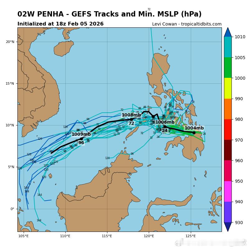 集合预报给出未来台风继续西行为主,强度逐渐减弱。日本气象厅认为这个系统进入南海前,可能就会减弱为热带低压。我国预报认为进入南海后减弱为热带低压。7-9日,台风的低压系统+北方强冷空气南下,南海将出现大范围的大风天气。