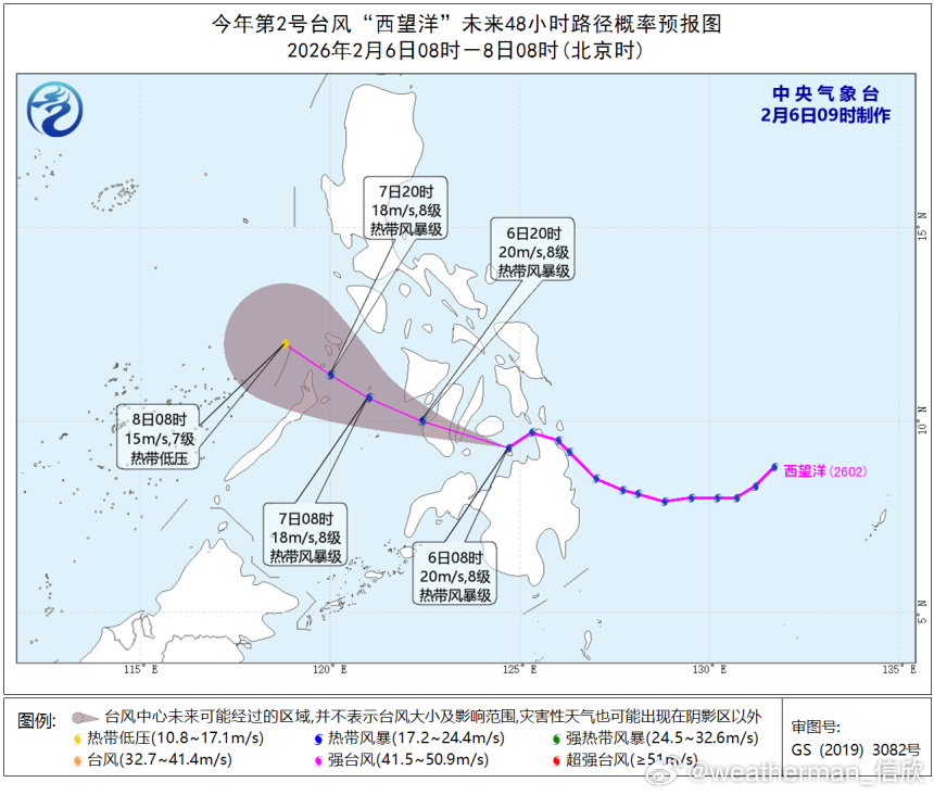 【台风西望洋】今年第2号台风“西望洋”(热带风暴级)已于今天(6日)凌晨3点钟前后在菲律宾棉兰老岛北阿古桑省沿海登陆,登陆时中心附近最大风力有9级(23米/秒),中心最低气压为990百帕。