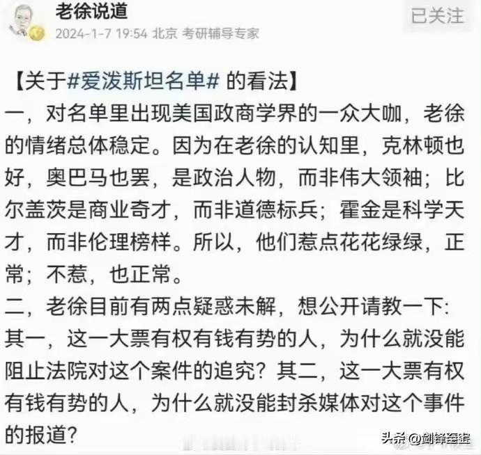 这什么专家? 谈到牢A咬牙切齿,句句不离基本盘 谈到爱泼斯坦容忍度瞬间上升,甚至