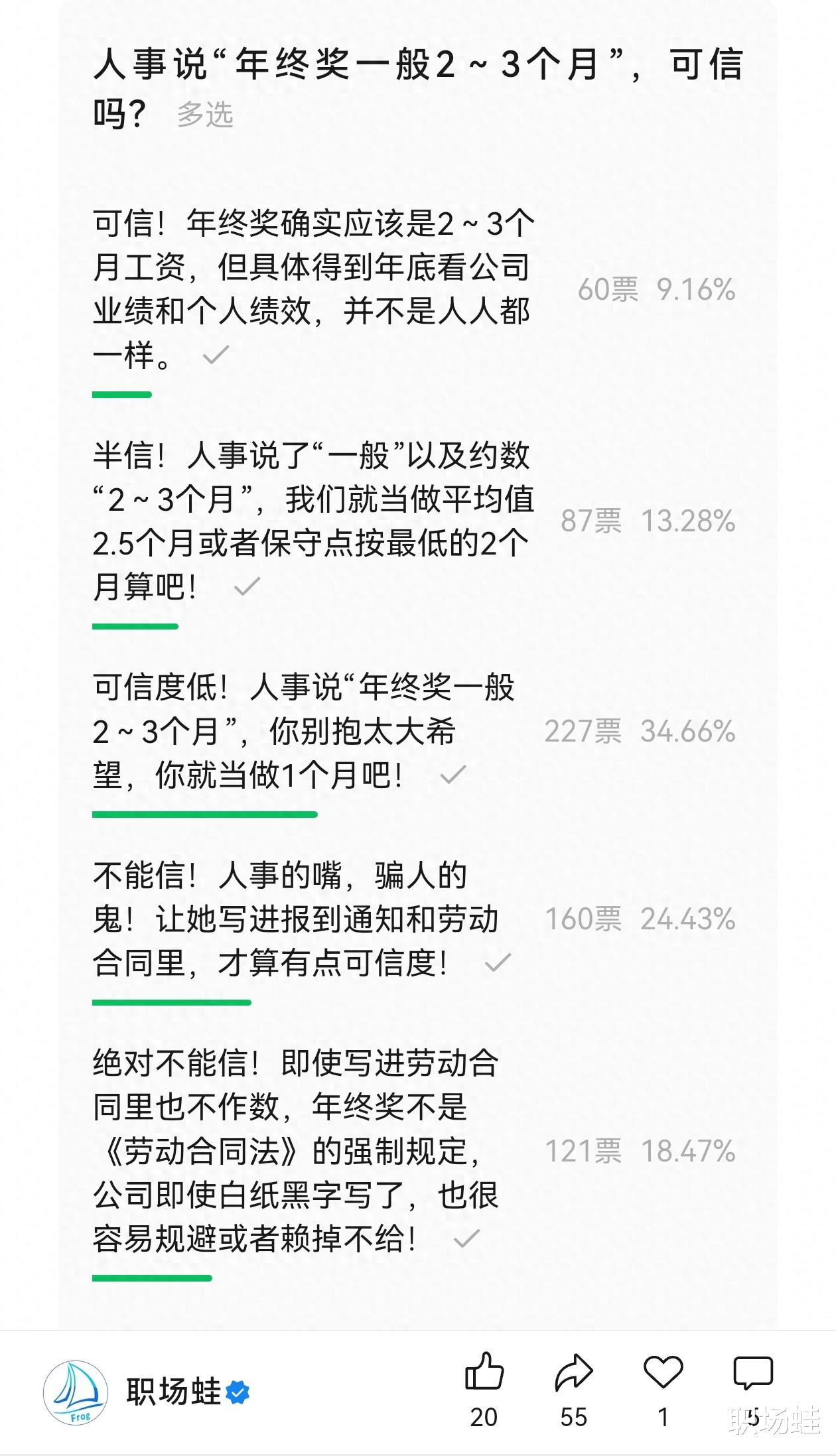 回到本文标题:人事说“年终奖一般2~3个月”,可信吗?我们做个选择题,请你小手一抖,点选下,帮人也是在帮自己。