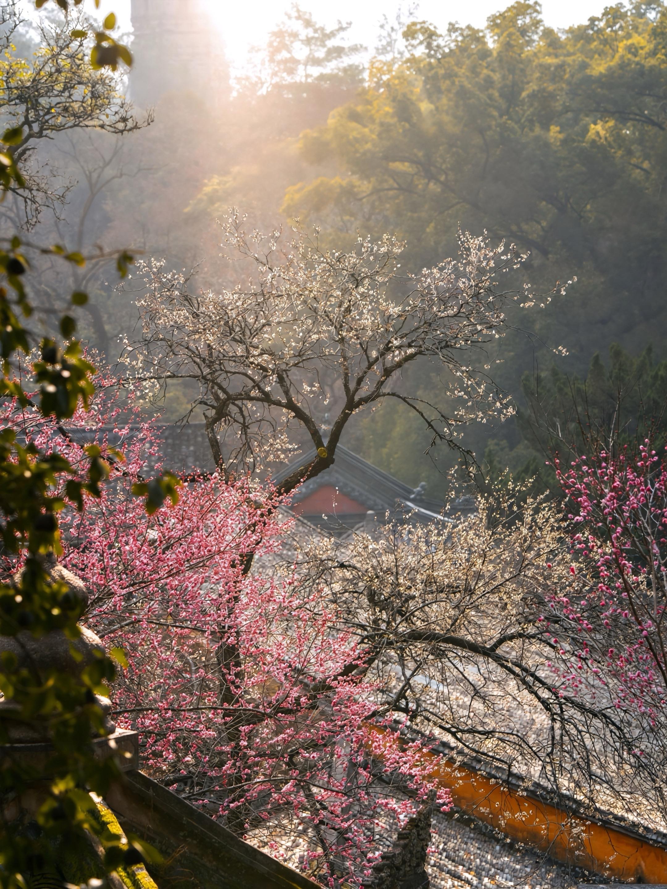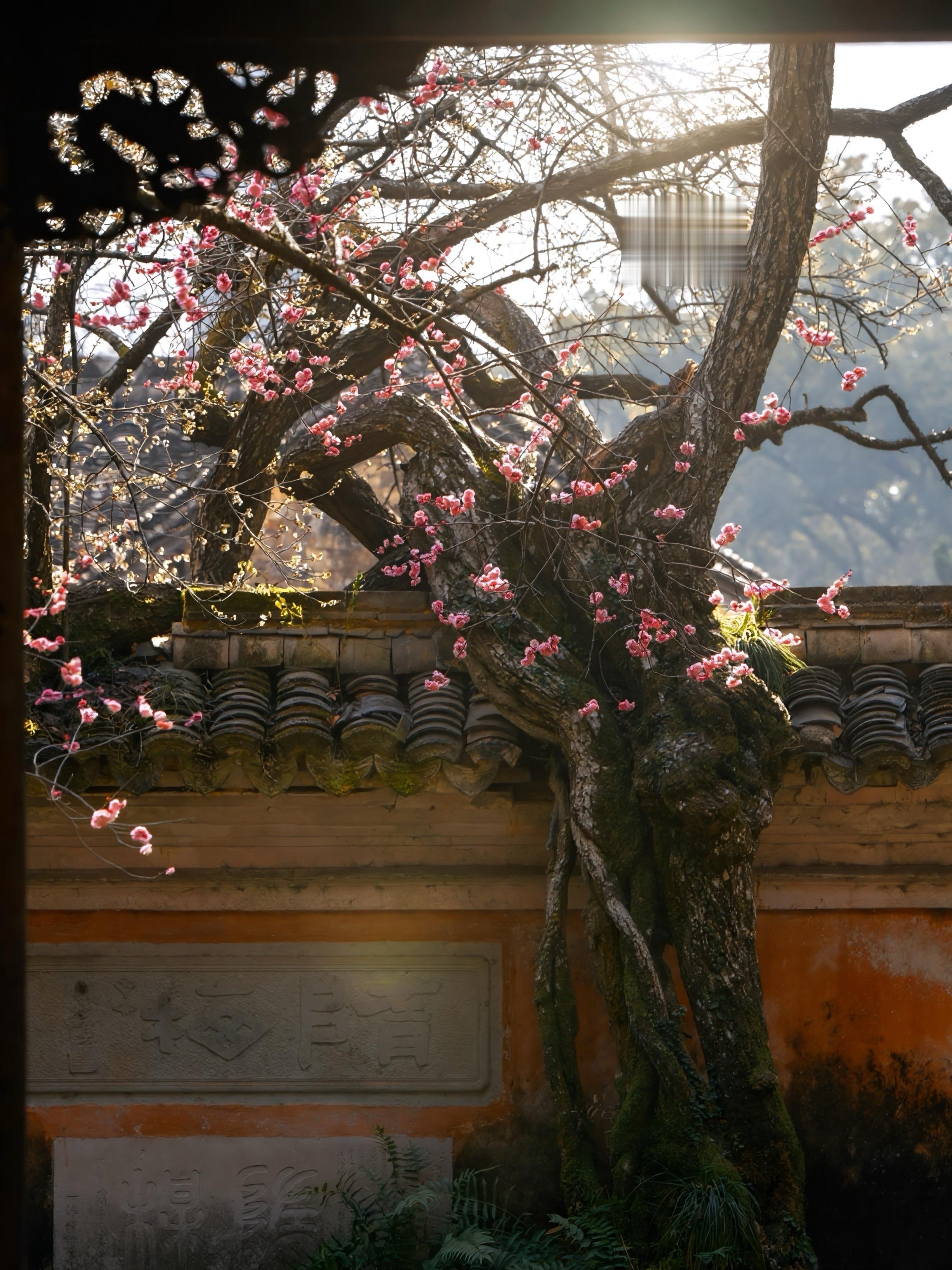 国清寺寻梅,赴一场千年光影约!踏入国清寺的古意肌理里,千年隋梅虬枝横斜,将时光凝在老干疏花间。阳光穿过飞檐翘角、拂过梅枝疏影,把细碎光影揉进古刹的禅意,落在青石板、映在佛墙侧,也漫在镜头里。每一帧梅影与古刹光影的相融,都是与千年时光的温柔邂逅,这趟天台寻梅,把国清的光影浪漫妥帖收藏。