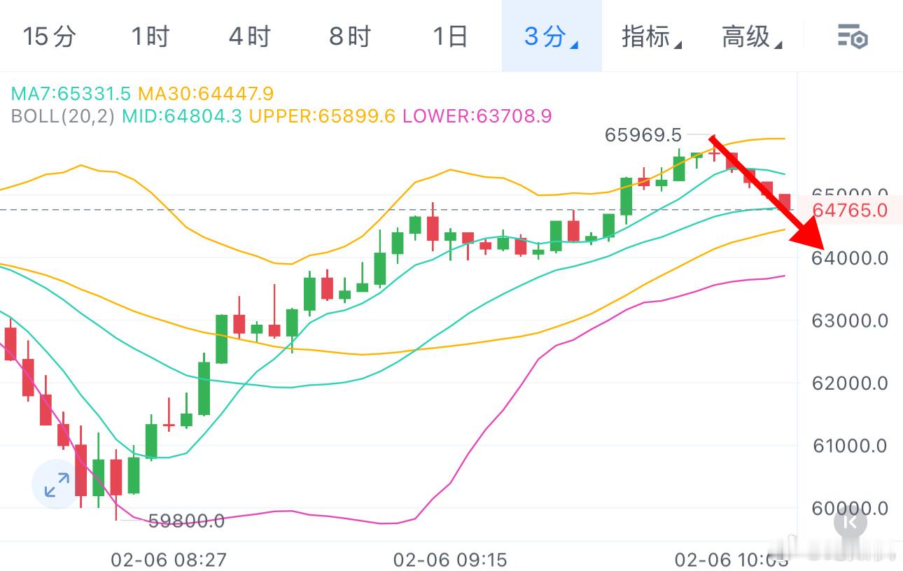 现报64700附近,空单将近800-1000點空间。刚刚老纪给的65500-66000空,精准踩入。