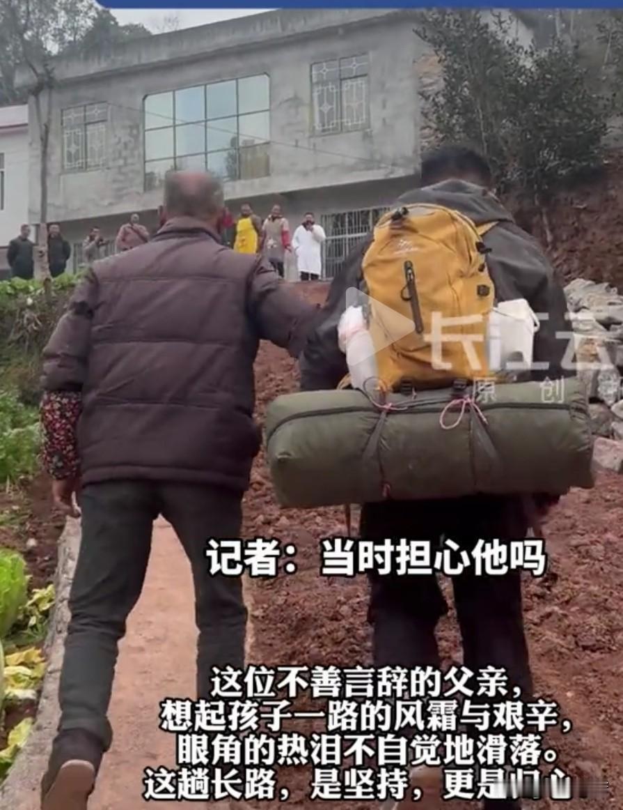 小伙徒步1400公里到家过年父亲落泪还真有徒步回家过年的,连绿皮火车都不坐了,1400公里啊,仅凭双脚丈量回来的,简直是太厉害了。看来没有什么能穷尽回家的脚步,没有什么能阻挡一颗想念的心。从上海到恩施,背30斤行囊,每天走30公里,既减了肥又省下钱,只是到家了,老父亲心疼地哭了。这个年儿子回来了,家就团圆了,多幸福!