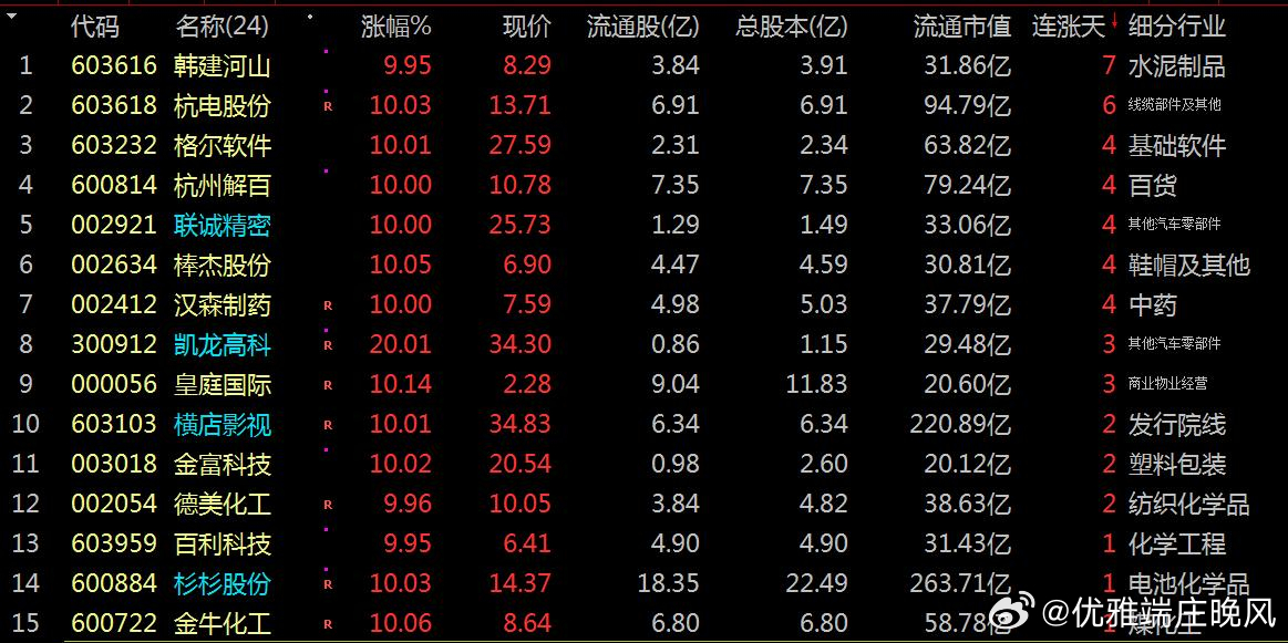 涨停龙头:惊艳今日:大涨主要:分散染料、元器件、家电零部件等板块逆势走强,相关龙头股表现突出等。欲知推手:下面透视涨停板龙头股票: