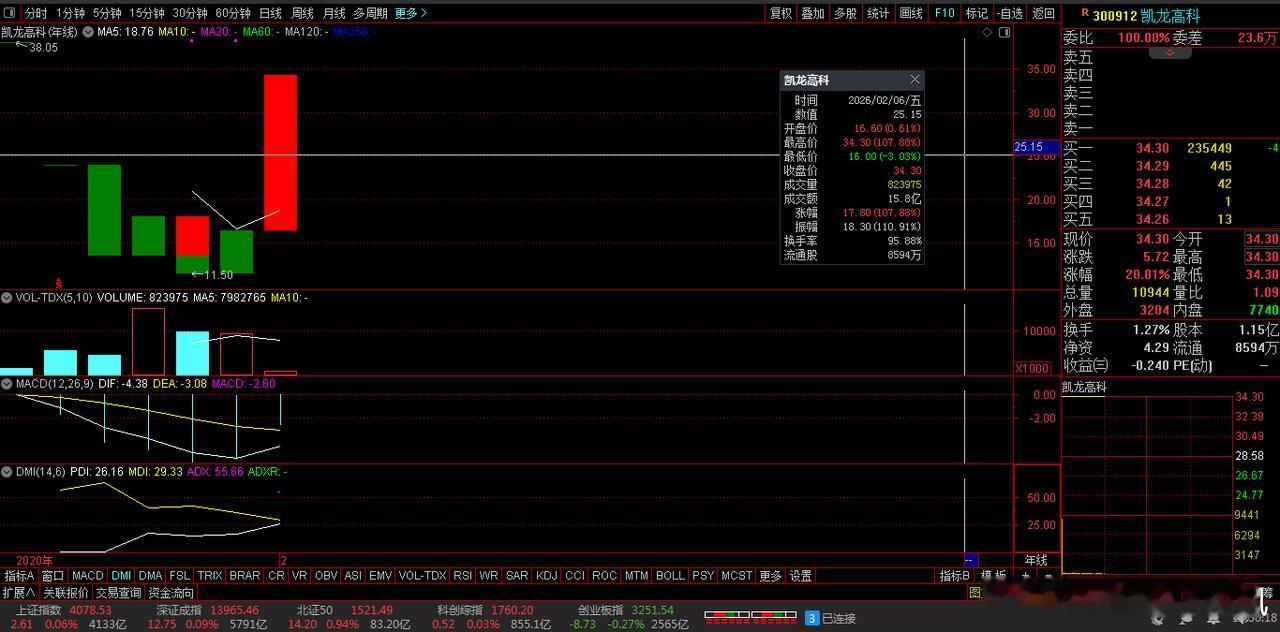 收盘价:34.30元。涨跌幅:20.01%。股票连涨:3天。