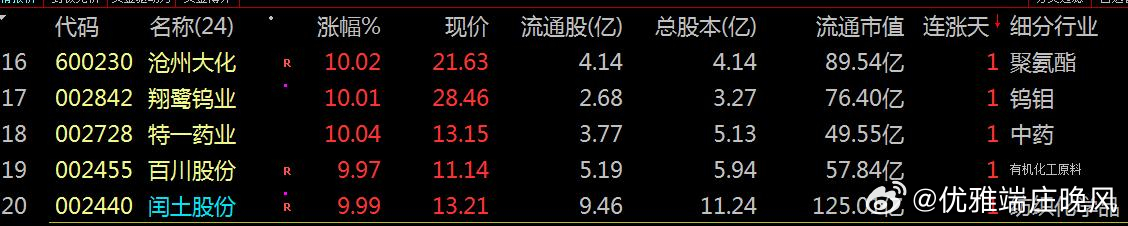 收盘价:21.63元。涨跌幅:10.02%。股票连涨:1天。