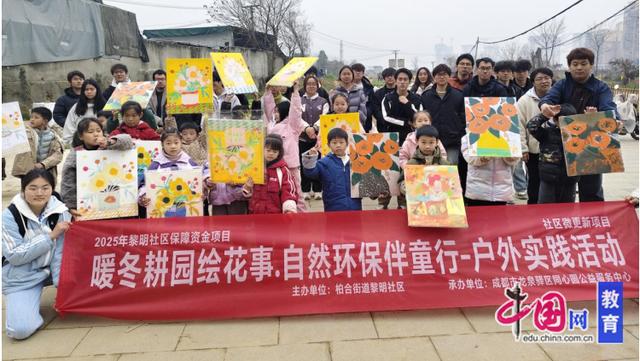 为丰富少年儿童冬季户外实践体验,将自然美育与环保教育深度融合,近日,由成都市龙泉驿区黎明社区主办,成都市龙泉驿区同心圆公益服务中心承办的“暖冬耕园绘花事自然环保伴童行”户外实践活动顺利开展。