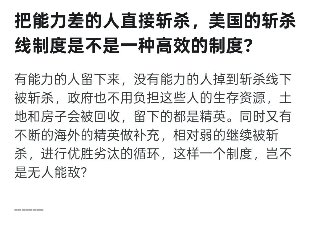 见过从各种角度给美国斩杀线洗地的。 这个角度还是第一次。 虽然丛林法则是很现实的问题,但人类社会毕竟不是丛林社会。 如果每个社会都在强调弱肉强食的那一套法则,那不就是不把美国普通人当成人看吗? 那不就是说美国普通人活该被斩杀吗?