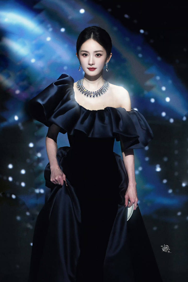 今天杨幂和张艺谋一起出席活动,杨幂这次穿了一件深蓝色的裙子,看起来年轻又靓丽。