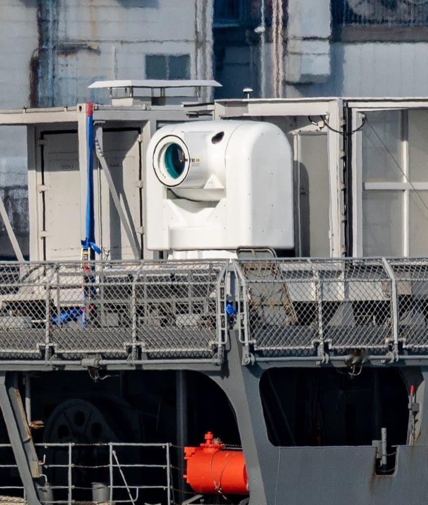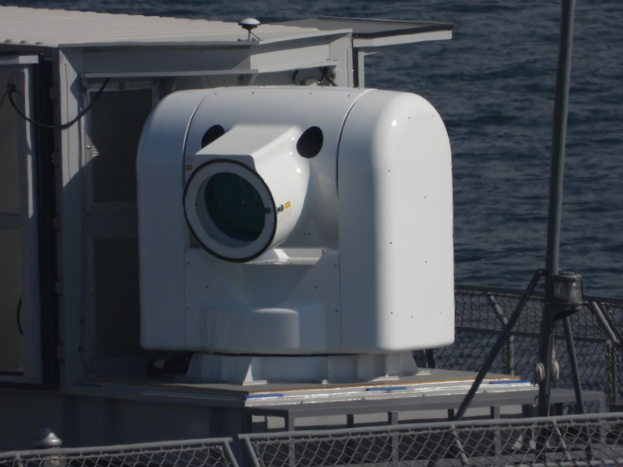 海自100KW级舰载激光武器系统正在“飞鸟”号试验舰上进行各项测试。 该系统采用