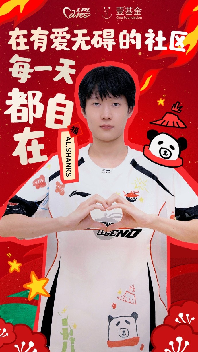 以笔为桥,以爱为翼。AL英雄联盟、BLG电子竞技俱乐部、iG电子竞技俱乐部、WBG英雄联盟分部与孤独症人士携手共创,为新春队服注入独一无二的生命力。