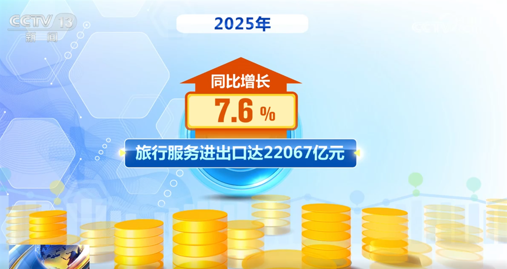 此外,旅行服务出口保持高速增长。2025年,旅行服务进出口达22067亿元,同比增长7.6%。其中,出口同比增长49.5%,进口同比增长1.4%。