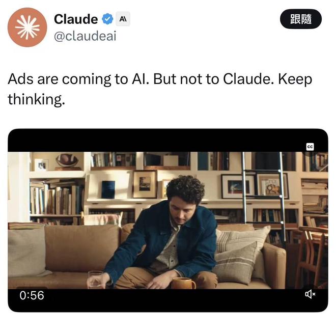 从背后的商业逻辑来看,Anthropic最大的客户是企业,且Claude本身拥有的订阅用户更多;而ChatGPT被OpenAI视作下一代入口,它需要承载全民级规模,于是不得不探索广告这种能够覆盖巨大成本、补贴免费用户的商业化手段。也正是两者的商业模式完全不同,这场口水仗本就不会有结果。