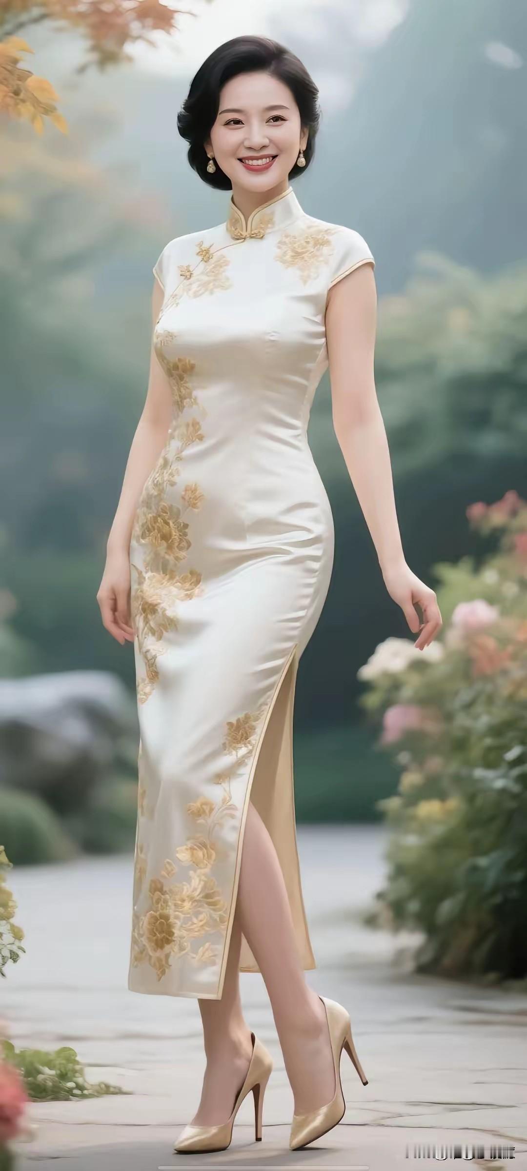 一袭旗袍雅韵生, 白底牡丹显风情。 嫣然一笑眸秋水 莲步轻移柳韵莹。