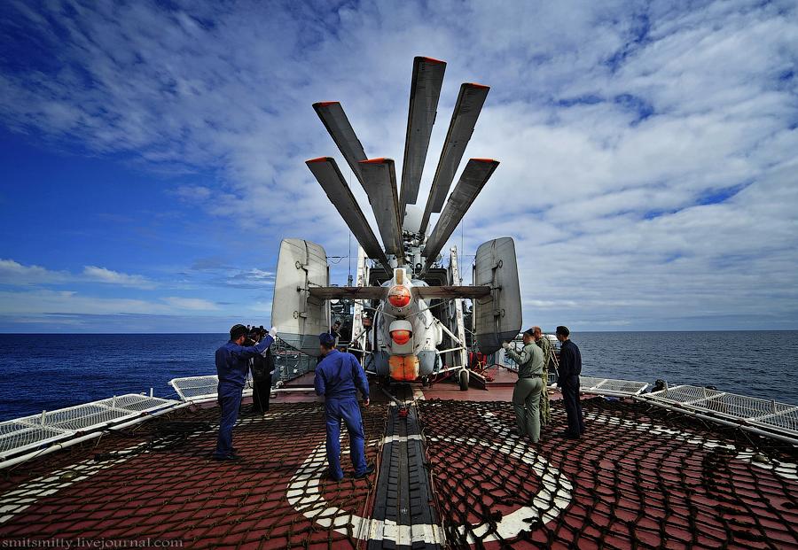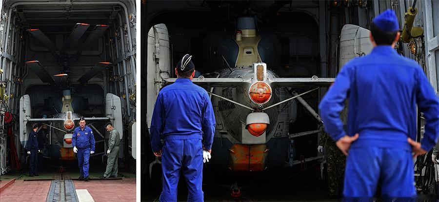 俄罗斯Ka-27PS舰载直升机从军舰机库出来