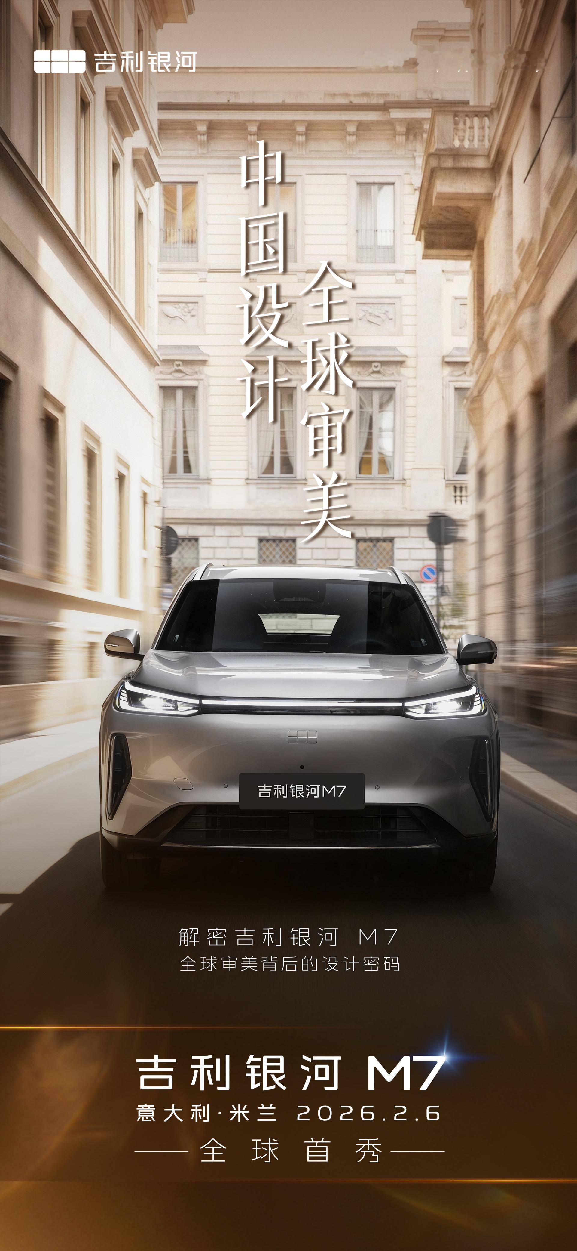 吉利银河M7上午10点全球首秀,与银河M9一样选择在米兰,对设计自信,凑巧的是还有一个情况跟大哥M9一模一样,M9米兰首秀遇上YU7发布会,M7首秀遇上L9首秀,时间丝毫不差,车是好车,但是流量太难了