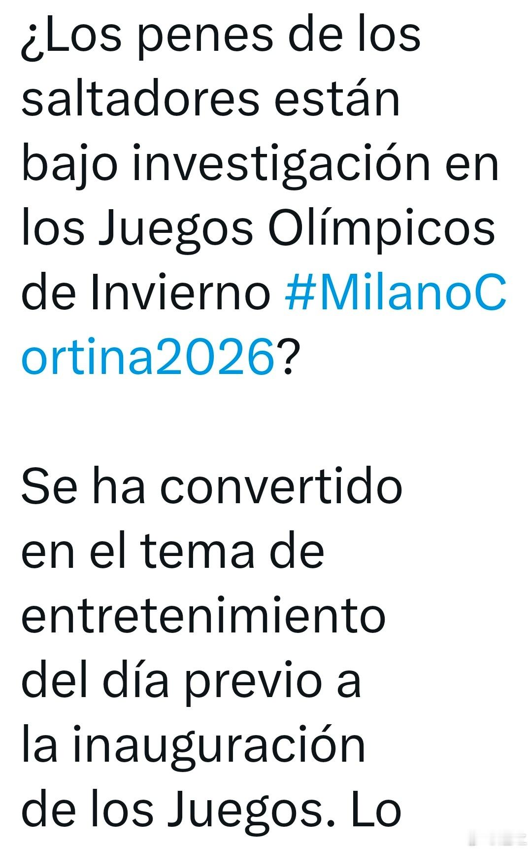 冬奥会 来个污的。西班牙著名体育记者,电视六台体育著名评论员、皇家社会多年的媒体总监Jose Manuel Amorós表示,应该对参加米兰冬奥会跳台滑雪的男运动员进行检查,以防止他们故意在自己的隐私部位进行植入,或者注射玻尿酸,以增大这一部分两厘米,从而在比赛中获得更好的、掌握风速的滑翔优势。