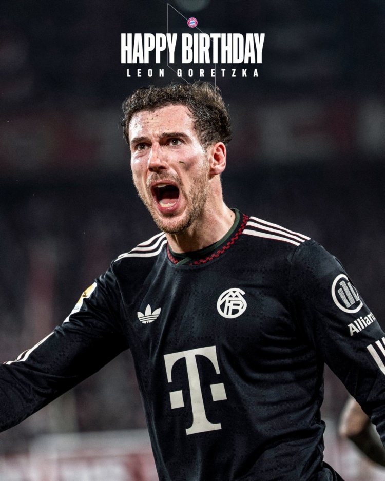 拜仁官方社媒晒出格雷茨卡的生日海报,配文:“生日快乐!格雷茨卡今天迎来了31岁生日!”